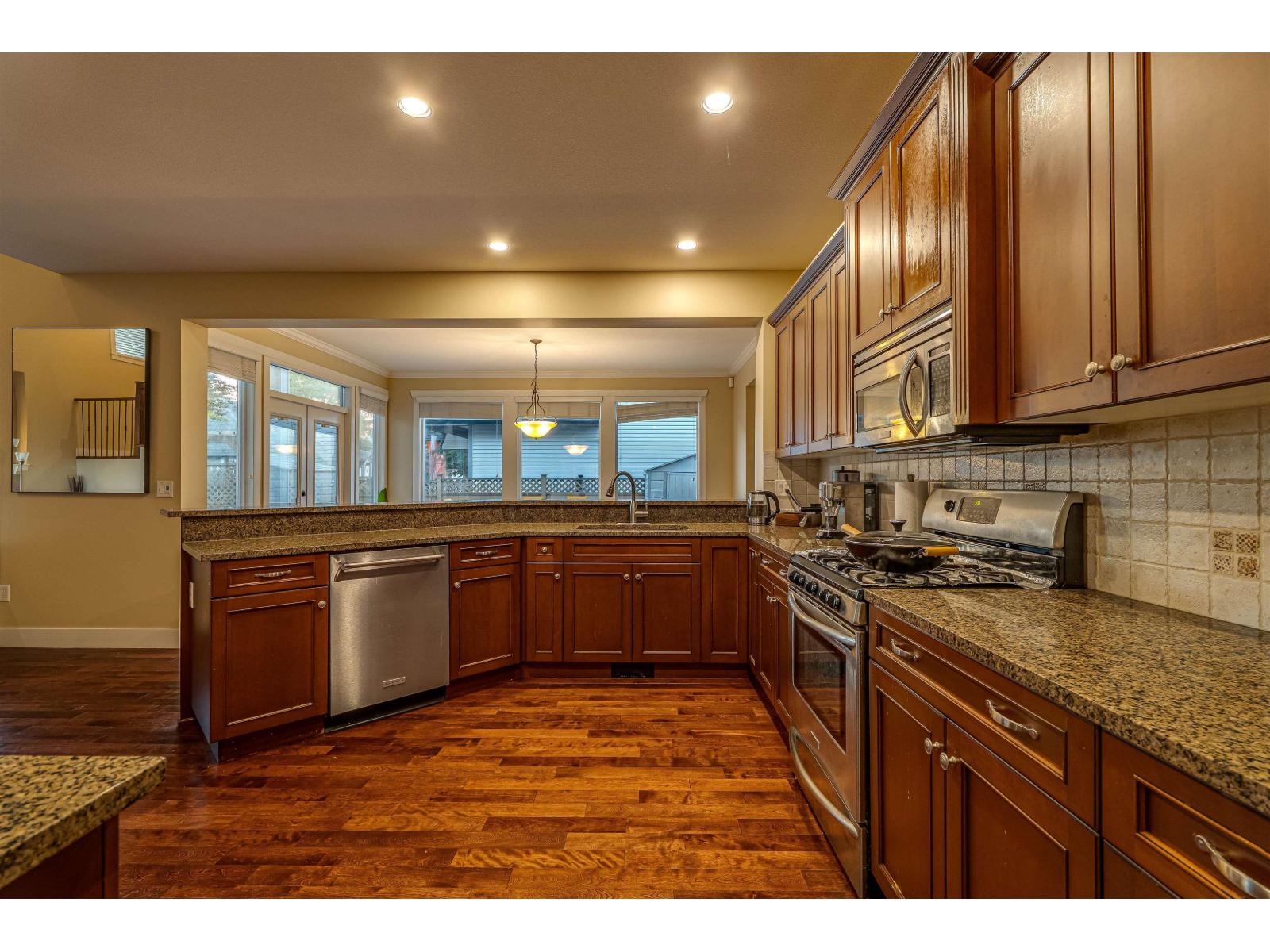 Welcome to this spacious 6-bed, 4-bath home on a desirable corner lot in Yorkson! Offering over 3,850 sq ft of well-designed living space, this home features an open main floor with hardwood floors, high ceilings, and a bright great-room layout that flows to a covered deck and private yard-perfect for entertaining. The kitchen offers stone counters, stainless appliances, and ample cabinetry. Upstairs includes 4 generous bedrooms, while the lower level features a legal 2-bedroom suite with separate entrance. Steps to schools, parks, and amenities, this is an incredible family home in a sought-after neighbourhood. Click the Virtual Tour URL for video and floor plan. (32335419)