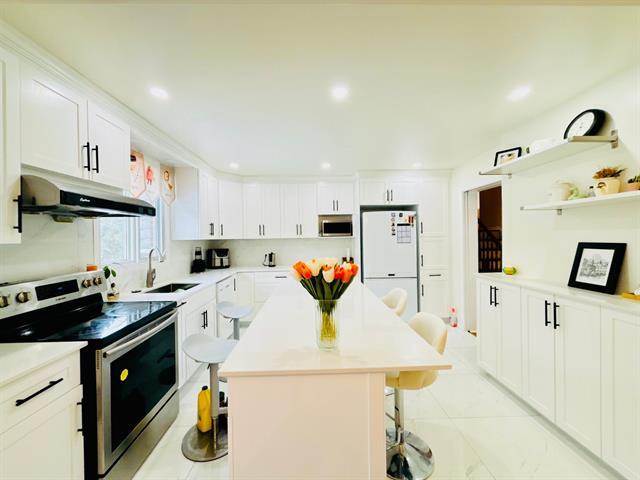 "Excellent location! This bright, detached split-level home is next to a park and school. It features 3+1 bedrooms and 3 bathrooms, a large living room, and a family room with a stone and wood fireplace. New kitchen and dining room. Finished basement and includes a surround sound system. This is a very well-maintained house-- must-visit!" (55213811)