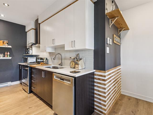 Superb 1-bedroom condo located on the 3rd floor in the sought-after Plateau de Hull area! Bright open-concept living space with large windows, wall-mounted air conditioning, and a private covered balcony. Modern kitchen with ceramic backsplash, quality countertops, and stainless steel appliances. Spacious primary bedroom with large closet. Contemporary bathroom with glass-enclosed shower/bath. Roof redone in 2025 and contingency fund in excellent condition, ensuring peace of mind. Parking included and outdoor storage. Close to shops, parks, trails, and public transit. A practical and elegant lifestyle aw Storage space: 230-7 Parking space: 64 (57262604)