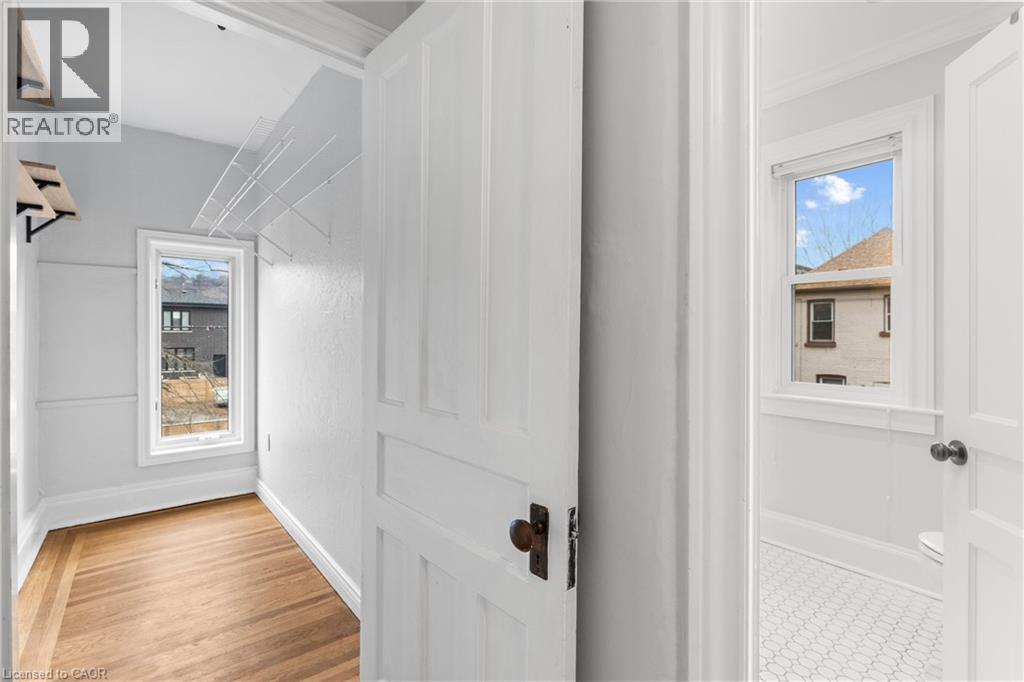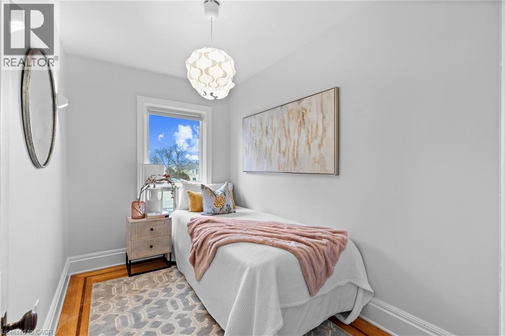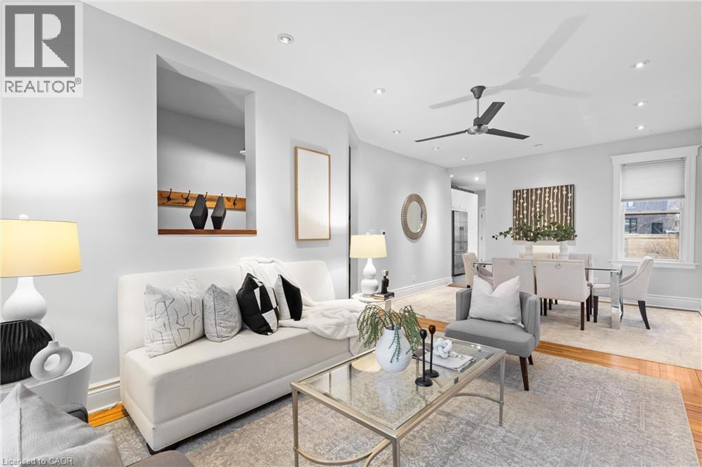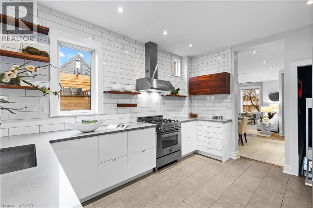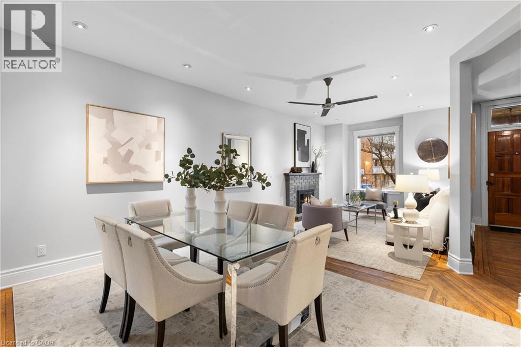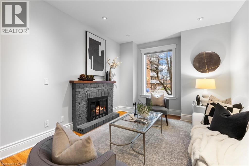Coveted Kirkendall neighbourhood, solid brick 19th Century Victorian home with absolutely stunning renovations while maintaining its charm and character. Main floor features a bright, open-concept living and dining area with original hardwood floors, soaring ceilings, pot lights, and a fireplace. The impressive modern kitchen showcases a sleek contemporary design with Caesarstone quartz countertops, white lower cabinetry paired with custom black walnut upper cabinets and shelving, a Bertazzoni professional gas range, Fisher & Paykel refrigerator, and Miele dishwasher. A full-height subway tile backsplash, porcelain floor tile, pantry cabinetry, pot lights, abundant natural light, and walk-out to a raised deck and backyard complete this exceptional space. Upstairs offers three well-appointed bedrooms plus a versatile home office nook or walk-in closet, all featuring original hardwood floors, large windows, and a thoughtful mix of original and replica baseboards and trim. The beautifully updated full bathroom is both spacious and elegant, with a soaker tub, marble vanity, pot lights, and plenty of natural light. Enjoy outdoor living with a raised deck and covered porch off the kitchen overlooking a fully fenced backyard offering excellent privacy. Parking for two cars is available and easily accessible. Numerous updates include electrical wiring, insulation, select windows, fencing, kitchen, and bathroom—making this a truly turnkey home in a prime location. Steps from Locke St, enjoy the best of dining delights and truly the best part of the city. A five minute walk from Earl Kitchener Elementary School, all amenities, public transit and parks makes this location second to none. (70054979)