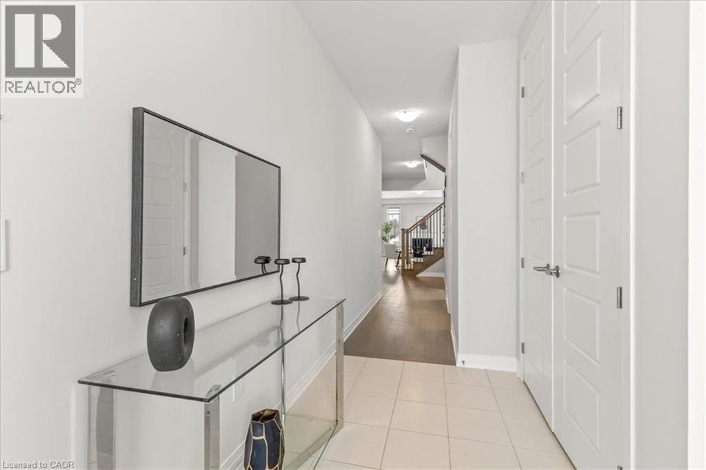 Hallway with light tile patterned flooring and stairs