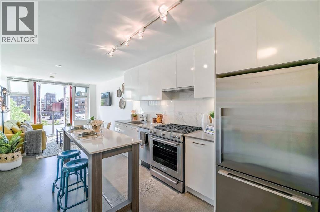 Junior 1-bedroom at a newer concrete building on one of the best blocks in Chinatown. This bright, south-facing loft-style home features polished concrete floors and city views. The kitchen includes a full size fridge and gas range, marble backsplash, large moveable island, and generous storage. Tastefully finished bathroom with custom vanity and frameless glass shower enclosure. Includes a storage/bike locker on your floor plus a second locker. Pets and rentals allowed. Steps to Vancouver´s best restaurants, nightlife, and minutes from Main St, Gastown, and Downtown. Parking not included but can be rented a black away. (32336447)