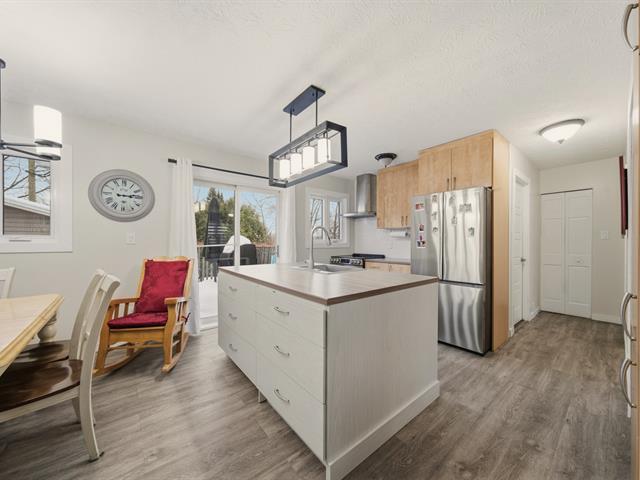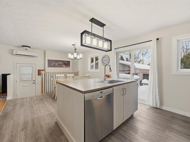 Renovated, turnkey property located in a sought-after area of Fleurimont. It offers a welcoming living space encompassing a renovated kitchen with an island and access to the patio, a dining room, and a bright living room. There are 3 bedrooms, 2 full bathrooms, and a large family room in the basement offering numerous layout possibilities. The 603.9 m² (approximately 6,500 sq ft) lot features a hedged yard, a double driveway, and a detached garage, ideal for projects or storage. Close to services, schools, shops, and major roads, this property combines comfort, space, and quality of life. (45058515)