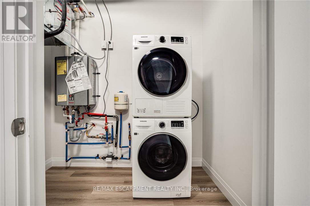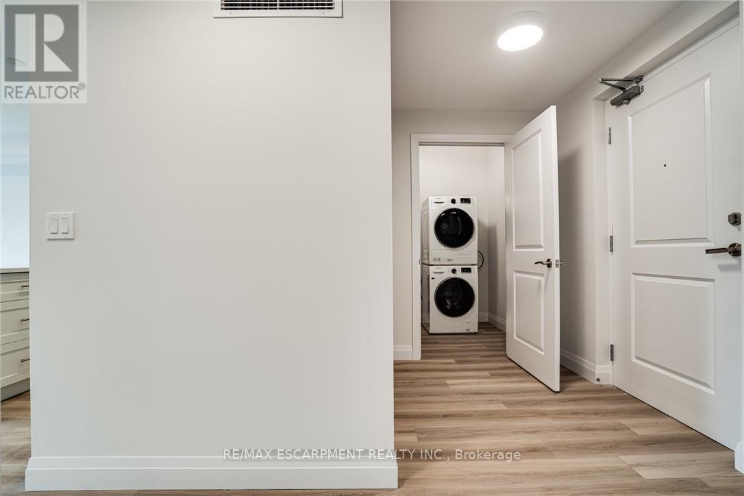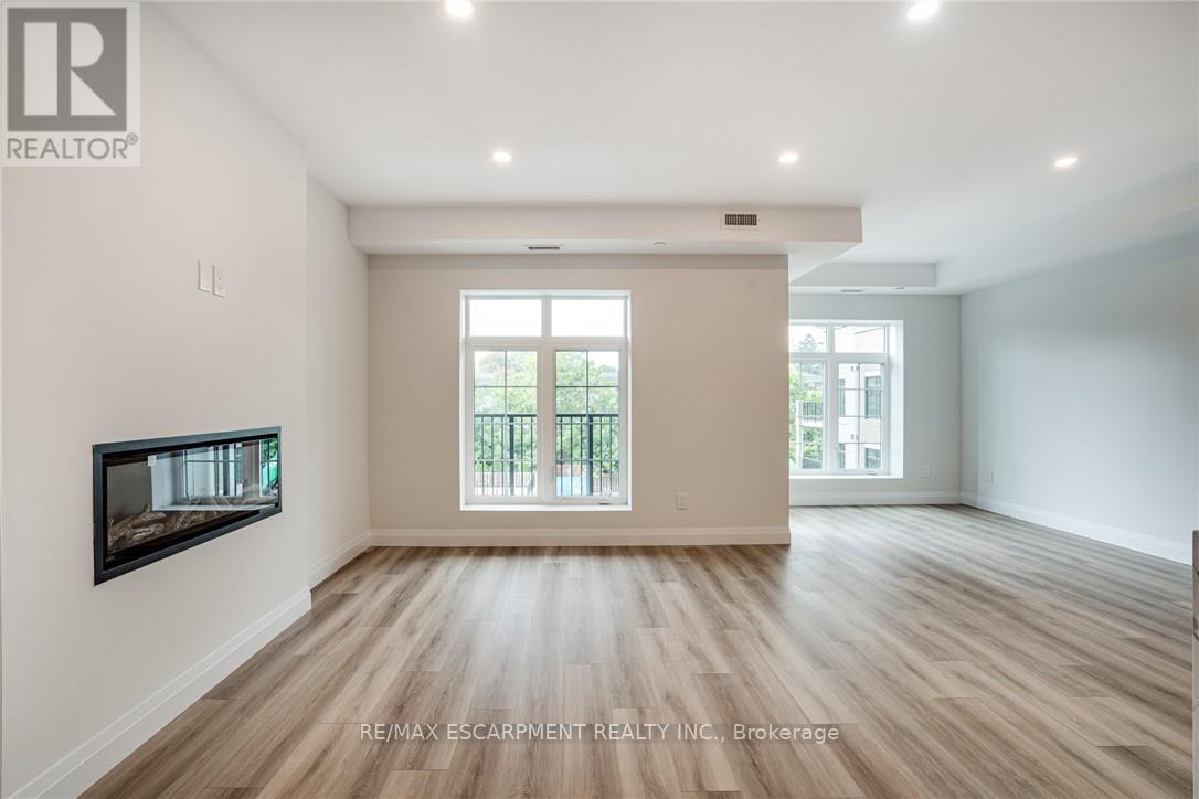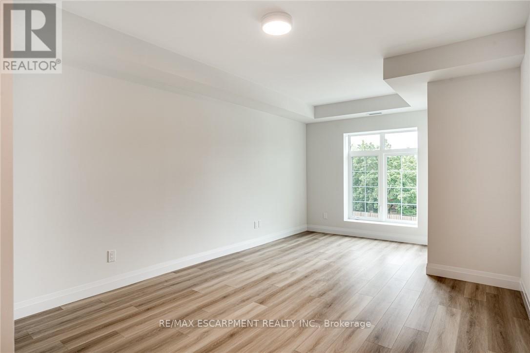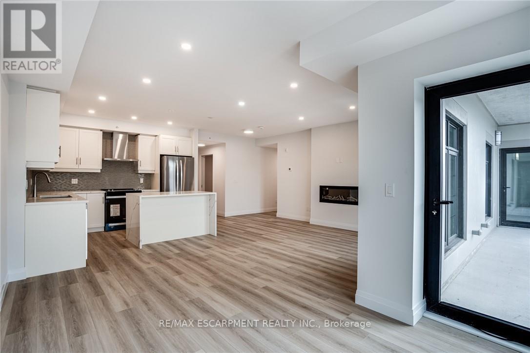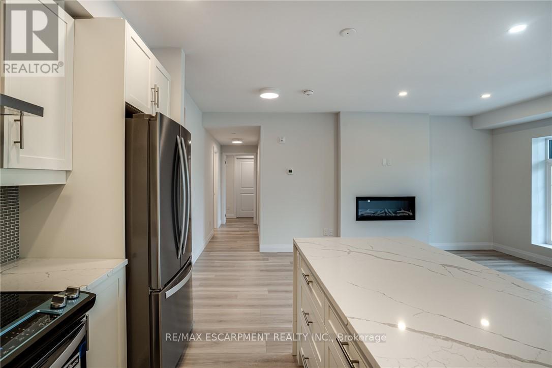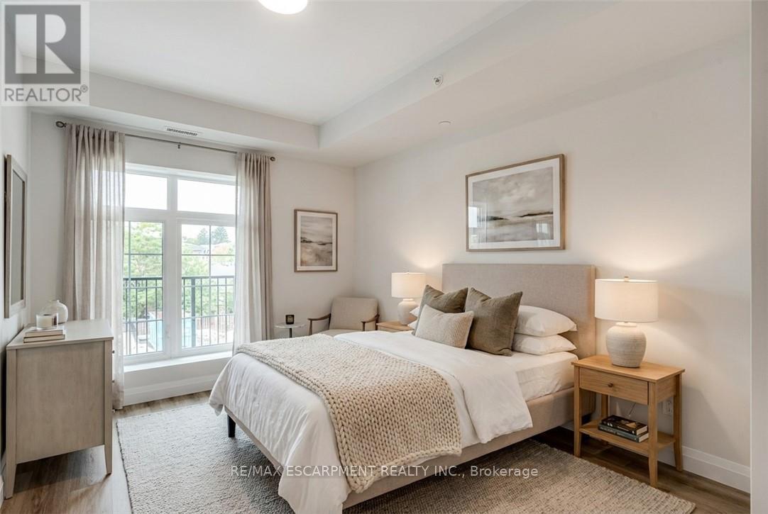 Seize the opportunity to own one of the city's newest luxury low-rise condos in the heart of Ancaster. In this "Sulphur Springs" model, enjoy 2 spacious bedrooms plus a den, 2 bathrooms, 2 parking spots and 2 lockers. The impressive amenities include a gym, media room, party room and "open air" rooftop terrace lounge with built-in BBQs and outdoor kitchens. Nestled among mature trees, it's conveniently located within walking distance to all of the shopping in the Ancaster core while being close to highway access. The open-concept layout combines the living room, dining room, and kitchen, making it ideal for entertaining friends and family. The spacious master bedroom includes a walk-in closet and a 4-piece ensuite, while a separate den/office provides added versatility. Enjoy the convenience of a second full bathroom and a dedicated laundry area. Relax on your private balcony with a morning coffee or an evening glass of wine. Additional highlights include luxury vinyl flooring throughout, elegant quartz countertops, and stylish pendant lighting over the island. Don't miss the opportunity to experience all that this exceptional unit has to offer! (41957454)