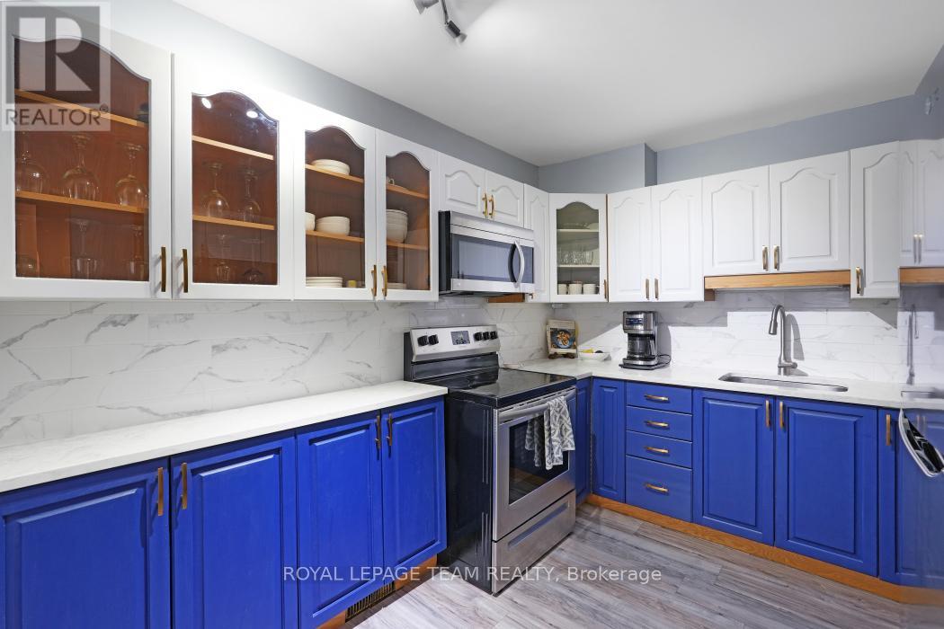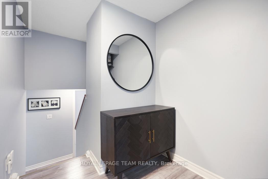 Centrally located in the heart of Bells Corners and with no rear neighbours, this upgraded, well maintained, 3 bedroom townhome is ideal for first time home buyers, down sizers, singles and couples alike. The spacious, welcoming foyer is complete with a convenient 2 piece bathroom. Up a few steps, you enter the well designed, open concept main living space with light filled living / dining area, and the updated kitchen featuring quartz counters, loads of counter / cabinet space, newer stainless appliances and a convenient pass through to the living area. The dining area has built-in bench seating with handy storage and has direct access to the backyard. Up a few more steps you come to two secondary bedrooms overlooking the front of the property. The top level is comprised of the very large primary bedroom featuring his and her closets, a gorgeous renovated bathroom with marble flooring and 2 vanities with LED mirrors with anti fog feature. The lower level is finished with a cozy recreation room, laundry and plenty of storage. Electrical breaker panel replaced and all receptacles upgraded (22), Furnace (25), Air Conditioner (25), Dishwasher (24), all other appliances (22). This property also includes private covered parking with visitor parking available. This home is close to the Ottawa green belt with access to nature trails, retail, restaurants, schools & transit. Book your showing today! (41957532)