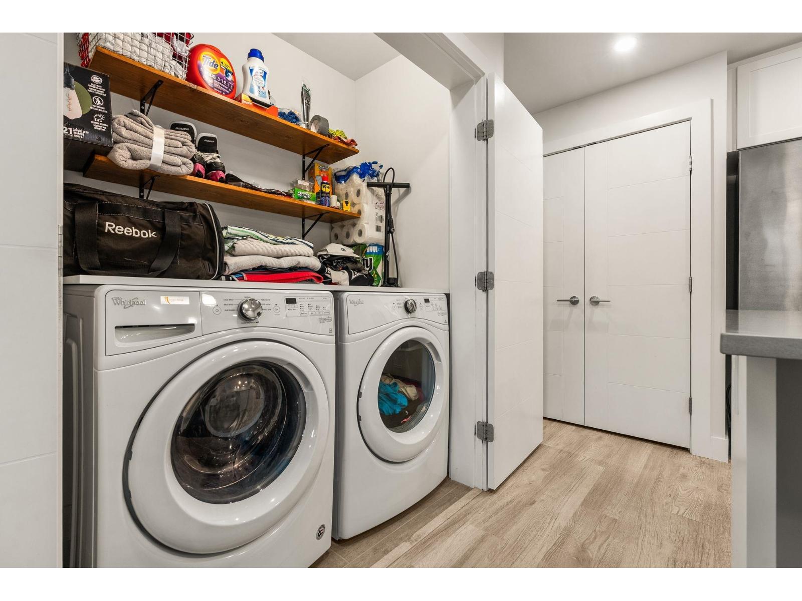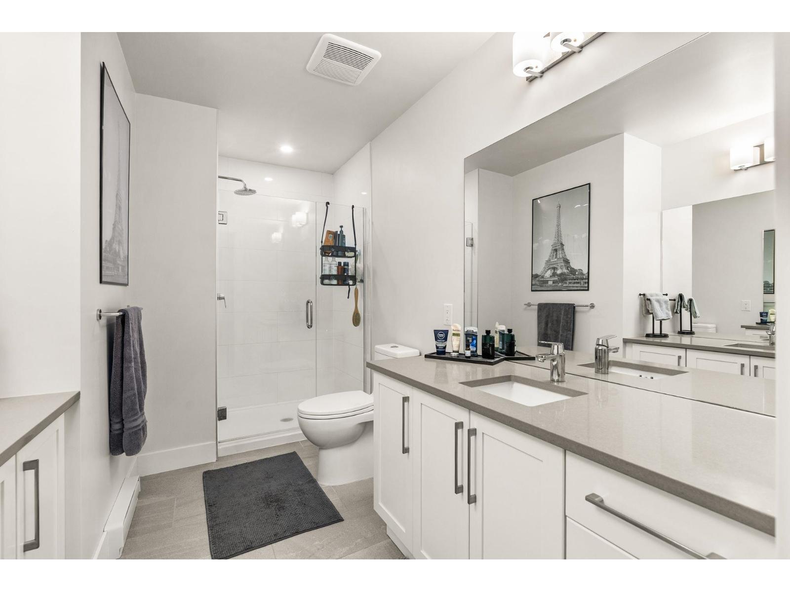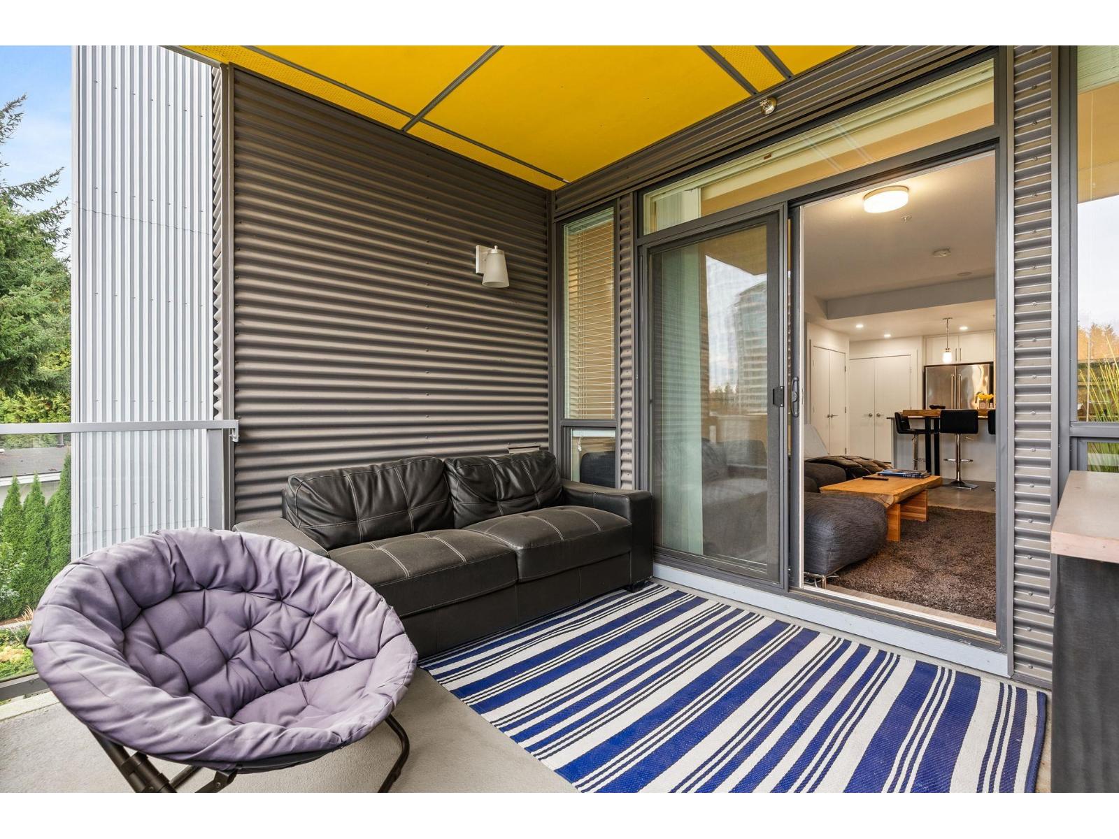 Welcome to Mill District, where modern living meets unbeatable convenience. This bright and stylish 2-bedroom 2-bathroom home is ideally situated in one of Abbotsford's most central locations, just steps away from Mill Lake Park and surrounded by mountain views. Inside enjoy high ceilings, granite countertops, premium KitchenAid appliances with a gas range, and a spacious kitchen complete with large pantry. The home features laminate flooring, a side-by-side washer and dryer and air conditioning for year-round comfort. Both bedrooms include a walk-in closet and private, ensuite bathrooms, with the primary offering a double vanity and glass door, a rain shower. Step outside to a large west-facing patio with an unobstructed view and a gas BBQ hookup perfect for relaxing in the evenings! (32332739)
