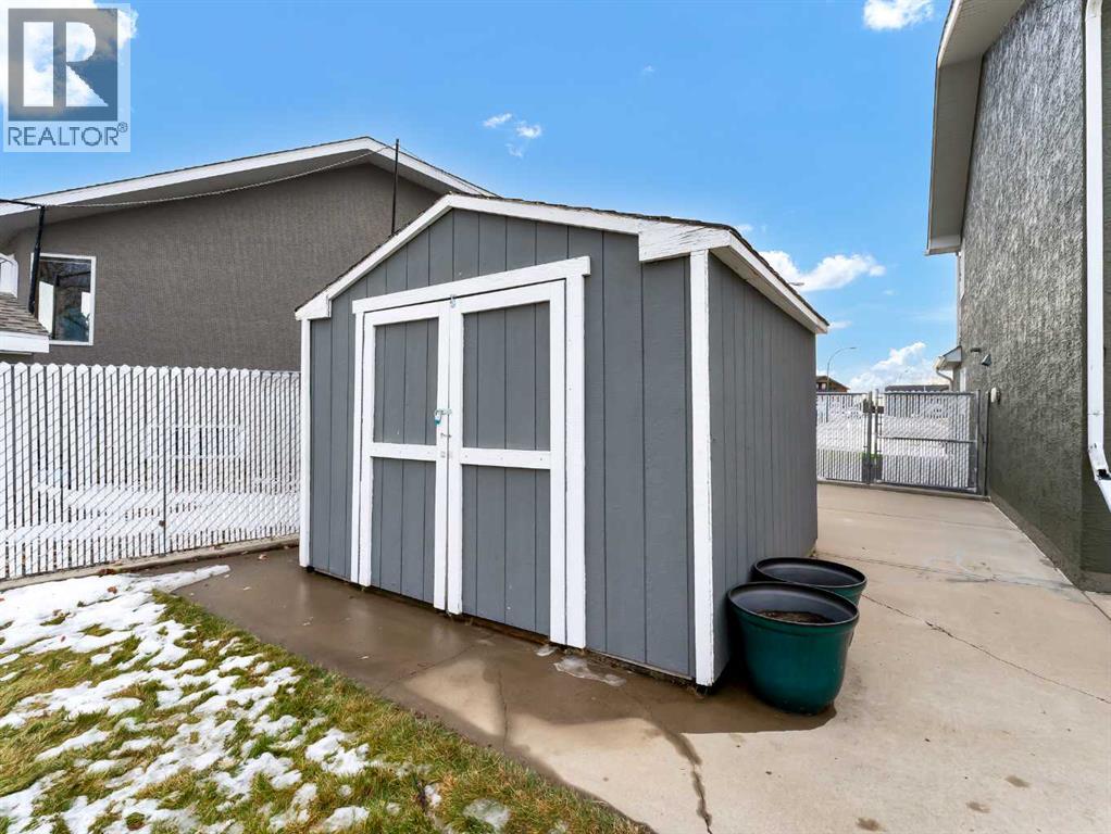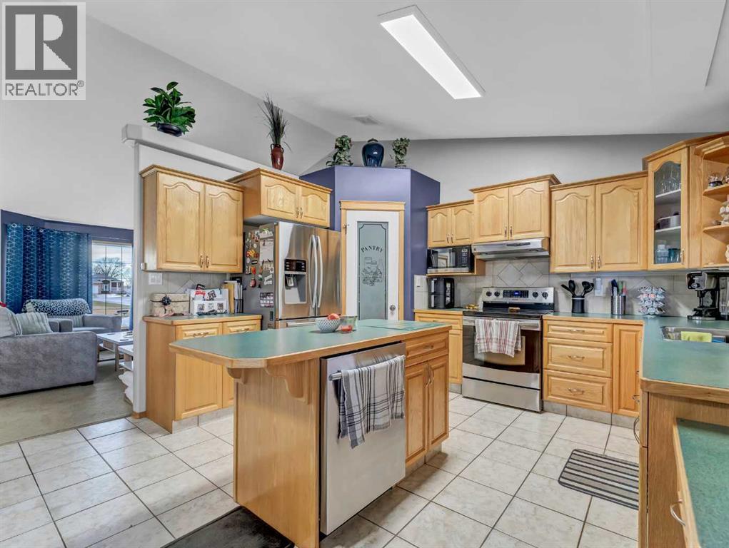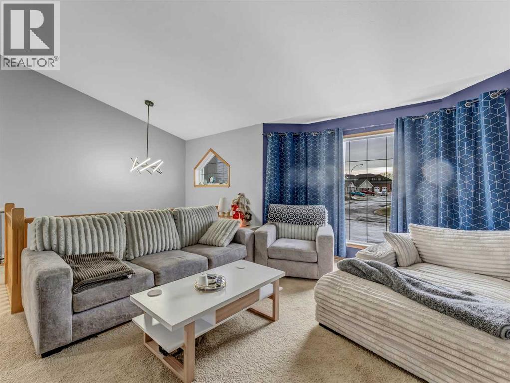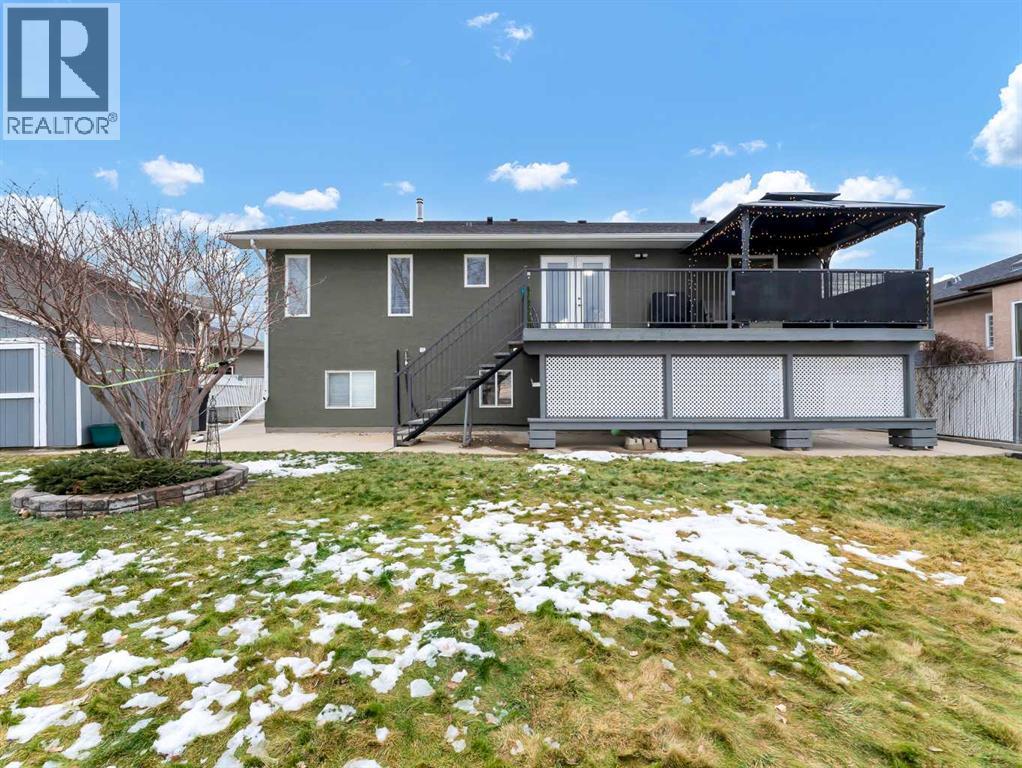 Welcome to the best neighbourhood in Redcliff! This fully developed 1,436 sq ft bi-level home is perfectly positioned on an oversized pie-shaped lot, with a beautiful green space out front and the golf course stretching out behind you. It truly feels like your own quiet oasis, with no busy streets in sight and nature surrounding you on both sides.Step inside to a bright, spacious kitchen that overlooks the backyard and golf course, so you can enjoy the view while you cook or entertain. The kitchen features a walk-in pantry, a central island, and a full package of newer stainless steel appliances. The large dining room flows seamlessly out to the deck and concrete patio, creating an ideal indoor-outdoor space for gatherings, barbecues, or simply relaxing and taking in the view.You will love the generous main floor laundry room, which offers plenty of extra storage and keeps everything organized and out of sight. The primary bedroom is a true retreat, with a great walk-in closet and private ensuite. It is set a few steps away from the additional two main floor bedrooms, giving you a little extra separation and privacy.The lower level is flooded with natural light from the huge windows and offers a welcoming family and games room complete with a cozy fireplace. There is also a dedicated office with glass doors, a fourth bedroom, and direct access to the attached garage.The finished double attached garage, along with an extended driveway, provides ample parking for guests or room for a recreational vehicle. Outside, the newly updated, low-maintenance exterior means you can spend more time enjoying your surroundings and less time on upkeep. Additional features include a large shed, a newer high-efficiency furnace, underground sprinklers, newer shingles, and a well cared for interior. (31536310)