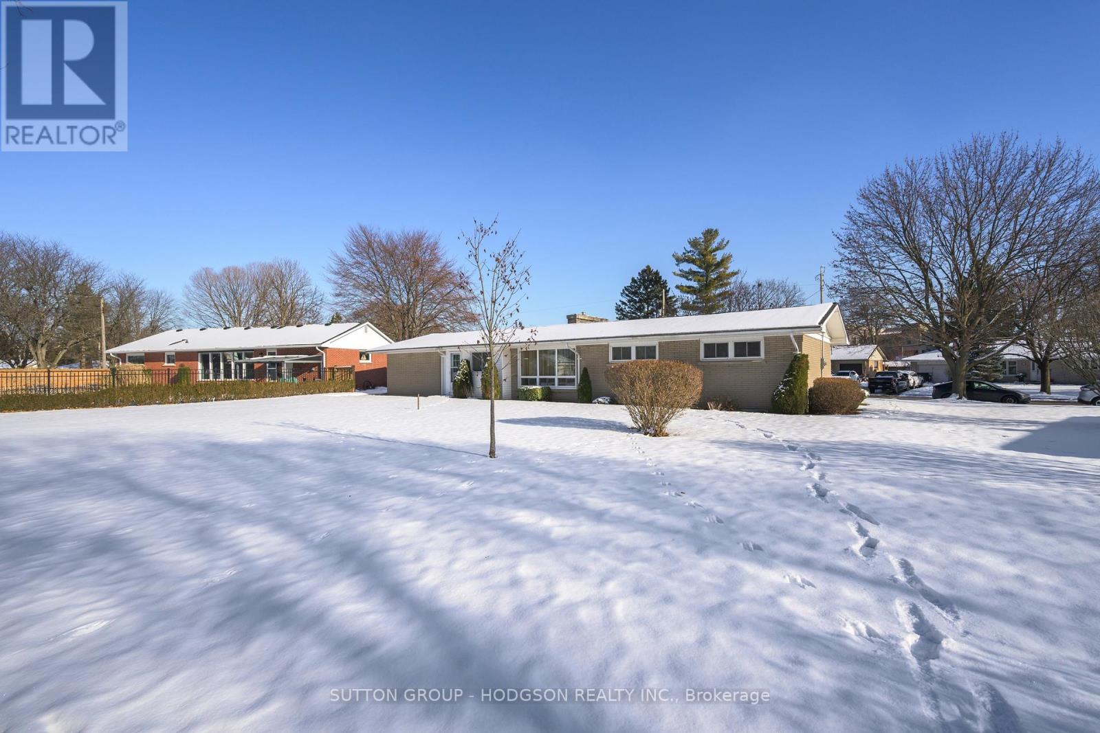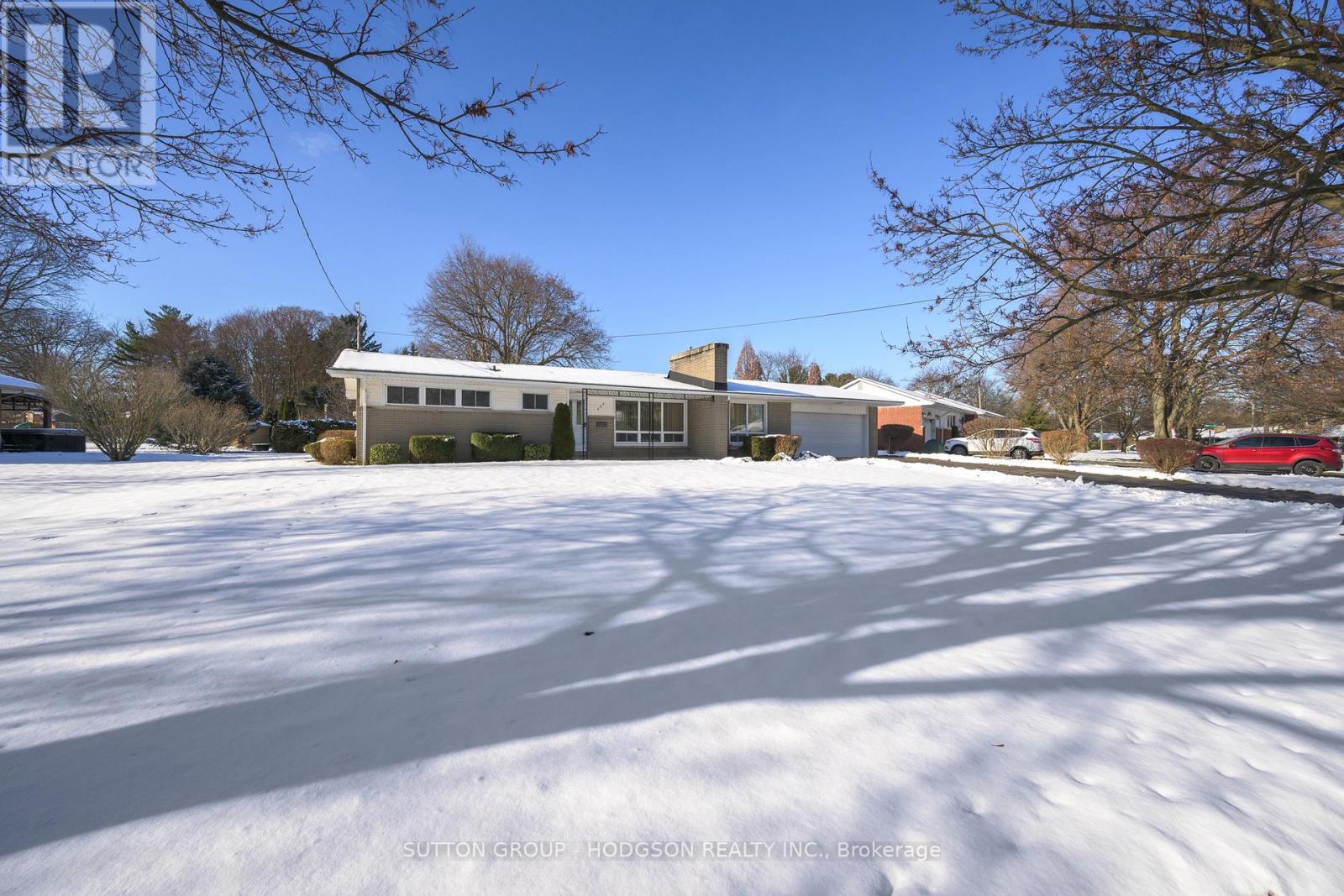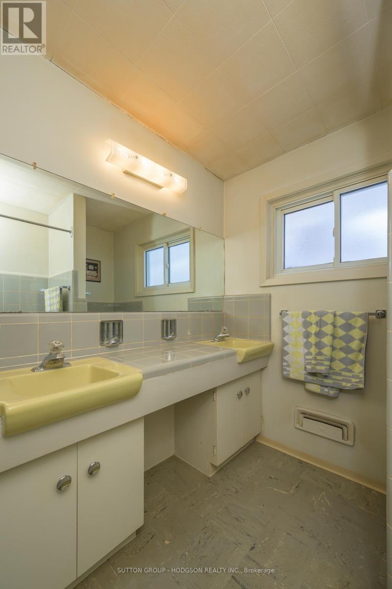 Nestled in coveted Oakridge, at 1400 square feet this remarkably well kept home offers larger square footage than many in the area, a generous 90' lot, and a rare double-car garage with inside entry, a true standout for the neighbourhood. With its authentic mid-century vibe and excellent potential to create an open-concept layout, this property is an exceptional opportunity. Step into a spacious great room featuring large windows on both ends that fill the space with beautiful natural light throughout the day. The dining room is separated by a classic mid-century double sided brick fireplace, a timeless architectural detail that adds warmth and character. The kitchen includes an original Republic metal kitchen, beautifully preserved and sitting adjacent to the great room, making it easy to envision a stunning open redesign. The bedrooms are well sized, including a primary suite large enough to accommodate a king-size bed and a main bathroom with two sinks. Updated with vinyl windows. This home offers fantastic potential in an A+ neighbourhood known for its sought after schools, local shopping, proximity to the hospital and Western University, arenas, Springbank Park, and several golf courses. Cherished by the same owner for over 60 years, this property reflects the lasting appeal of a neighbourhood that remains truly community-minded, something that feels rare today, and perhaps one of the reasons the owners stayed so long. Now this much-loved home awaits its next chapter, and its next owner to enjoy it for decades to come. A truly special property with timeless character and endless possibilities. (41957858)