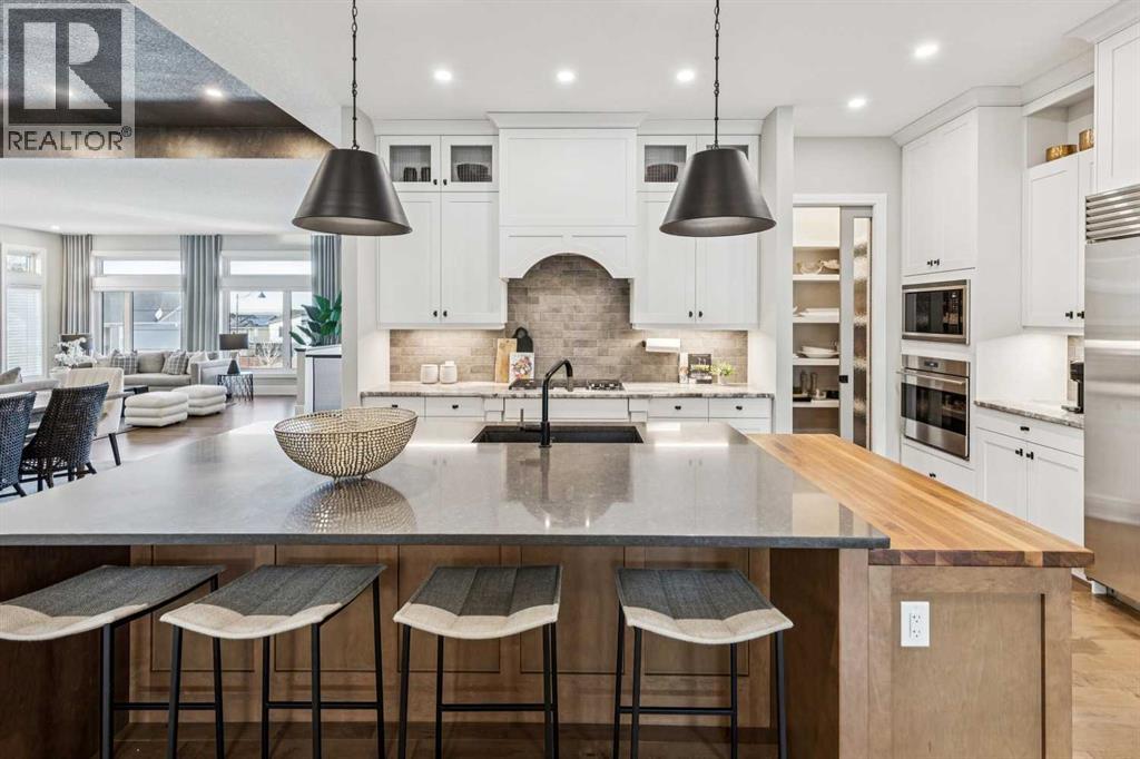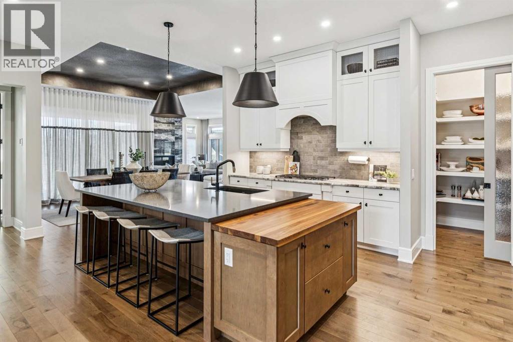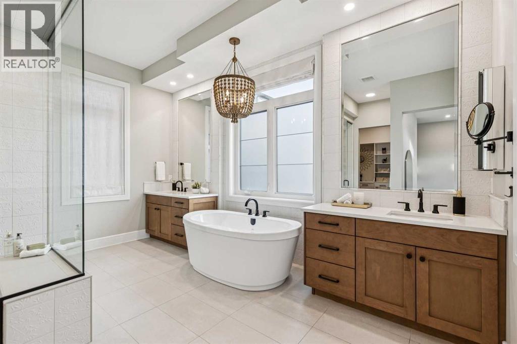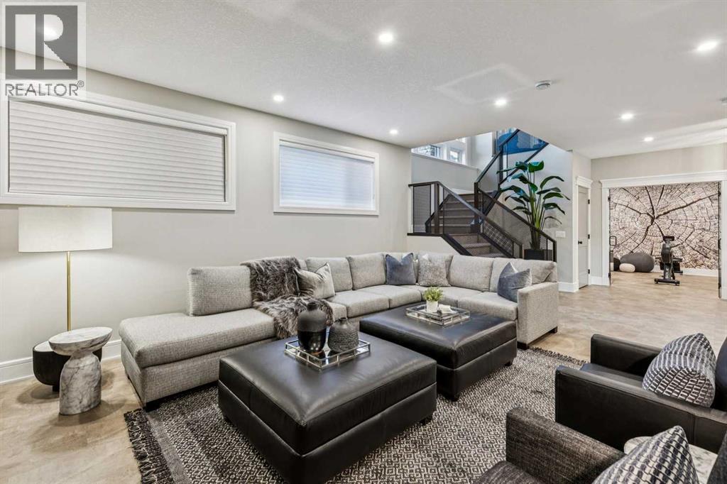 Welcome to a truly remarkable residence in the sought-after southwest community of Crestmont—a former Augusta show home showcasing extensive upgrades, refined craftsmanship, and a unique combination of luxury and functionality. Positioned on a generous corner lot with rare 5-car garage, this highly coveted bungalow boasts more than 4,000 sq. ft. on two levels and offers an elevated lifestyle with thoughtfully designed spaces both indoors and out. The open-concept main level boasts 10' & 11' ceilings and is anchored by a stunning chef's kitchen, featuring extensive custom cabinetry, high-end Sub-Zero and Wolf appliances, and an oversized pantry—perfectly suited for both everyday living and elegant entertaining. Sunlight fills the space through transom windows, flowing seamlessly into inviting living and dining areas that open to multiple outdoor spaces. The primary suite on the main level is a private retreat of impressive scale, complete with its own southwest-facing deck. A spa-inspired ensuite with dual vanities, heated floors, a luxurious soaker tub and an expansive dressing room creates a serene, hotel-calibre experience. The main floor is complete with an executive style office featuring built-in desk and cabinetry, powder room and functional laundry & mudroom. Designed for entertaining and relaxation alike, the fully developed lower level offers two additional generously sized bedrooms, each with it's own full bath and an spacious recreation and games room. A sophisticated wet bar is complemented by a dedicated wine room, while a fitness room and hobby/craft room with second laundry area adds to the home’s lifestyle appeal. Outdoor living is equally exceptional, with multiple decks and private outdoor spaces, including a secluded walk-out cove featuring a hot tub. Outstanding landscaping includes feature rundle stone, wrought iron fence and back yard bordered by additional evergreen trees for enhanced privacy and year-round enjoyment. A standout feature rar ely found: a five-car garage with room for vehicle lifts, and offering unparalleled storage, dog wash and flexibility for car enthusiasts or hobbyists. Situated in the coveted Crestmont community on Calgary’s west side, this home offers more than just luxury indoors. Residents enjoy access to an inviting HOA clubhouse, scenic parks and pathways, and sport courts for recreation and play. Retail destinations are conveniently close, and the location provides easy access to downtown Calgary as well as direct routes to the mountains, making daily life and weekend escapes effortless. This is a rare opportunity to own a statement property in Crestmont—perfect for empty nesters or those about to be - where luxury, privacy, and thoughtful design converge in one extraordinary home. (31535095)