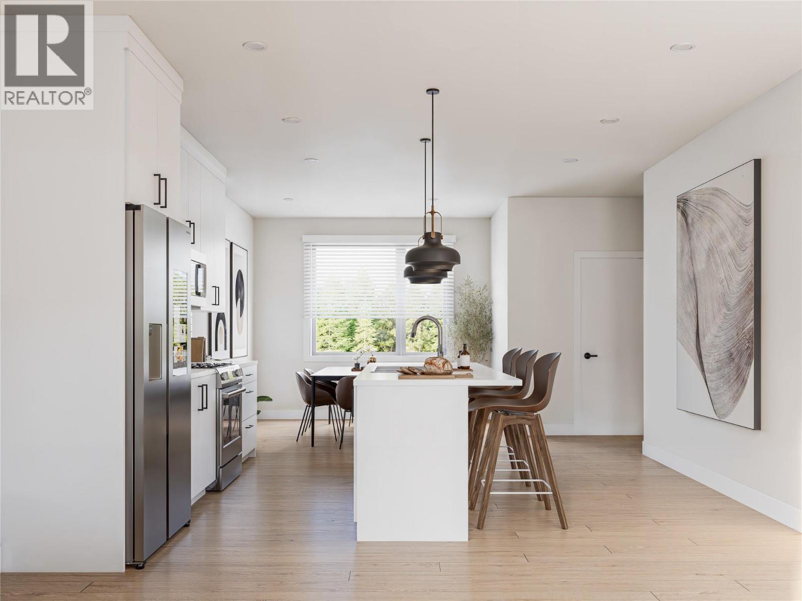 Welcome to MaraVista, Sicamous’s newest townhome community where modern design meets practical living. Unit 4 -This 1,486 sq.ft. 3-bedroom, 2.5-bathroom home features a generous 39’ x 13’ garage—great for storing recreational gear, boats, or extra vehicles. Inside the open-concept main floor offers a bright & functional layout with 9’ ceilings, enhanced soundproofing, & a galley-style kitchen complete w/ quartz countertops, matte black hardware, soft-close cabinetry, & a convenient eating bar. A street-facing deck extends your livingspace outdoors—ideal for sunny mornings & great people-watching. Upstairs, the spacious primary bedroom includes a full ensuite & walk-incloset. 2 additional bedrooms, a second full bathroom, & laundry are also located on the upper floor, offering comfort & practicality for families,couples, or long-term guests. Quality finishings run throughout, including durable vinyl plank flooring, energy-efficient windows, & a high-efficiency mini-split heating & cooling system. Exterior features include low-maintenance Hardie Plank siding and modern curb appeal. MaraVista is just steps to Sicamous’s main street, beaches, marinas, & year-round recreation. Pet-friendly (w/ size restrictions) Water utility included! This development is ideal for those seeking a vibrant yet low-maintenance lifestyle. BONUS $5,000 appliance credit offered for the first 4 units sold, this is your opportunity to own in one of BC’s best lakefront communities. (39629679)