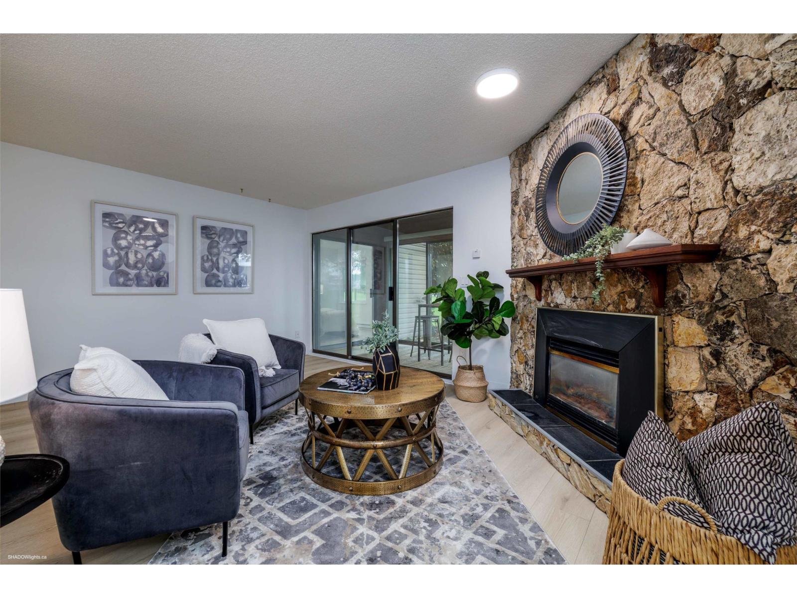 Magnolia Manor offers a stylish one-level (ground level) end unit combining comfort + tranquility. With 1,332 square feet, this home features three bedrooms + two full baths, including a spacious living room with a gas fireplace. Nestled against a beautiful park + water feature, it provides peaceful views and a connection to nature. The open layout allows for ample natural light, with a bright solarium perfect for morning coffee and a private patio for outdoor relaxation. Located close to new shops downtown and amenities, this home blends modern living with serene surroundings. Recent upgrades include new windows, flooring, paint, light fixtures, ductwork, washer/dryer, hot water tank, fridge, sink/faucet enhancing both appeal + functionality. (32335829)