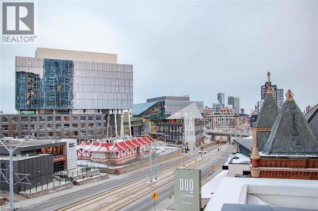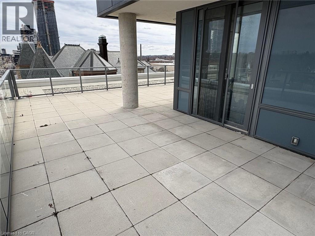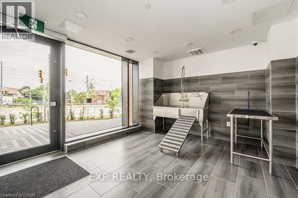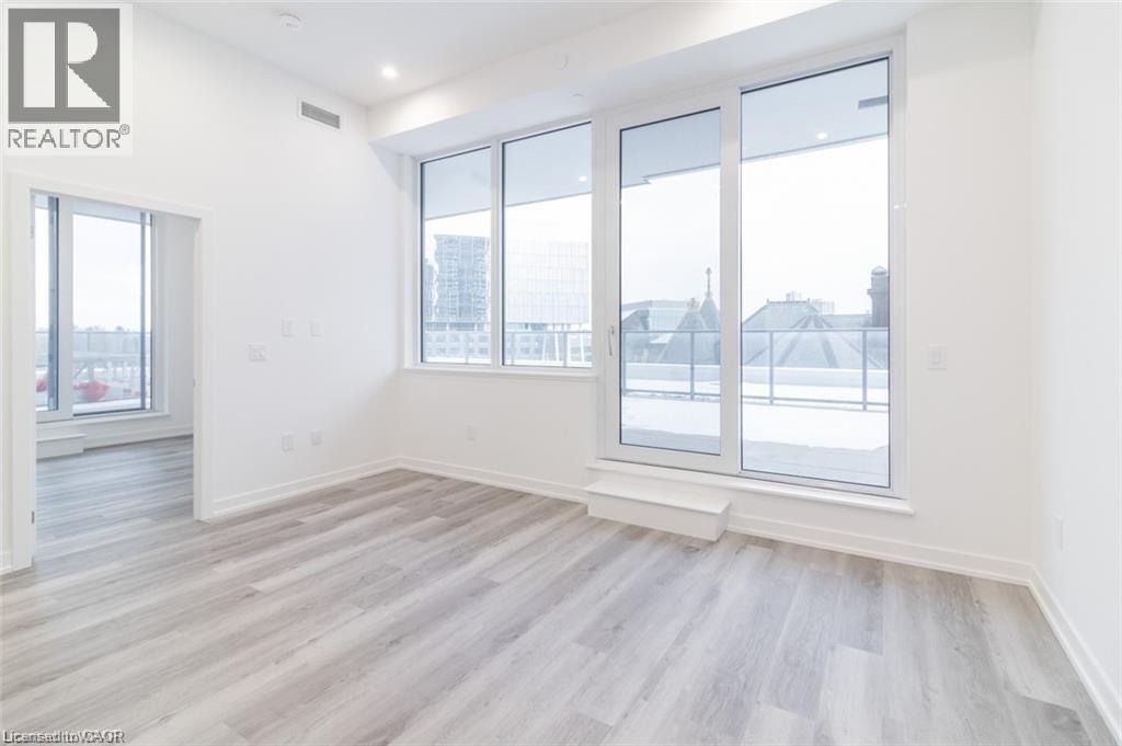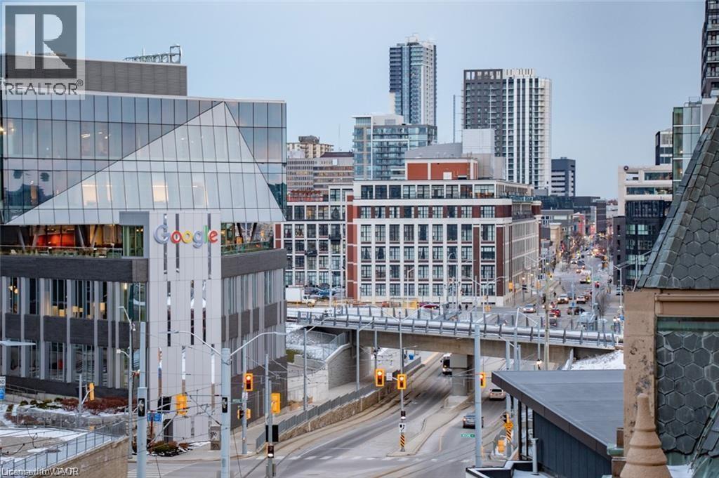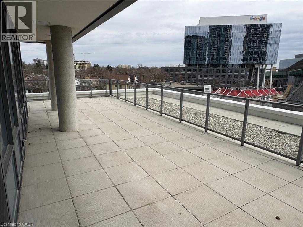 This beautiful 1-bedroom corner unit offers a massive 820 sqft wrap around balcony and is centrally located in the trendy Station Park in downtown Kitchener. Enjoy a carefree lifestyle of luxury and comfort, with countless features you will absolutely love. This unit comes with 1 underground unassigned parking spot, but a SECOND underground unassigned parking spot can be available if needed for an additional monthly cost. This Podium suite boasts 11' ceilings and an open-concept design, enhanced by floor-to-ceiling windows that fill the space with natural light. The living/dining and bedroom areas grant access to the massive L-shaped terrace, perfect for entertaining and letting your pets roam freely - it really is like being in your own private backyard. The modern kitchen includes stainless steel appliances, Caesarstone countertops, and a stylish backsplash, while the bathroom features glossy white wall tiles, matte floor tiles, and an enclosed glass shower. For your convenience, an in-suite stackable washer and dryer is included. Amenities You'll Love: Bowling alley with lounge area and bar, private hydro pool swim spa and hot tub, comprehensive fitness center with yoga and Peloton studio, Dog washing station, landscaped outdoor terrace, Concierge service, private dining room with kitchen, Secure smart parcel locker system and includes BELL FIBRE internet. Exciting future amenities are planned, including an outdoor skating rink, ground floor restaurants and dog park. This unit is steps away from the new transit hub, across from Google, shopping, restaurants, just minutes to the highways and more. LRT access is conveniently located on King Street, with both universities within a 15-minute commute. (70054926)
