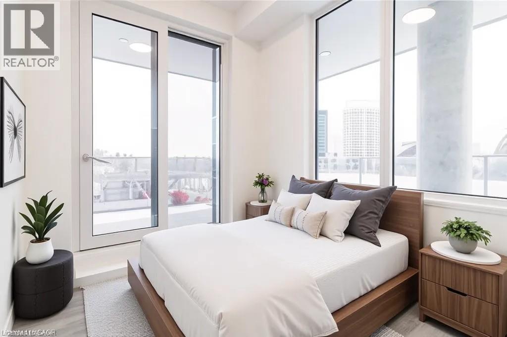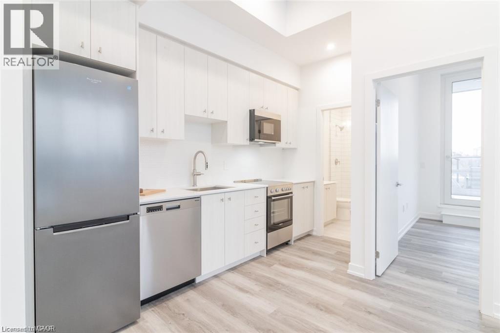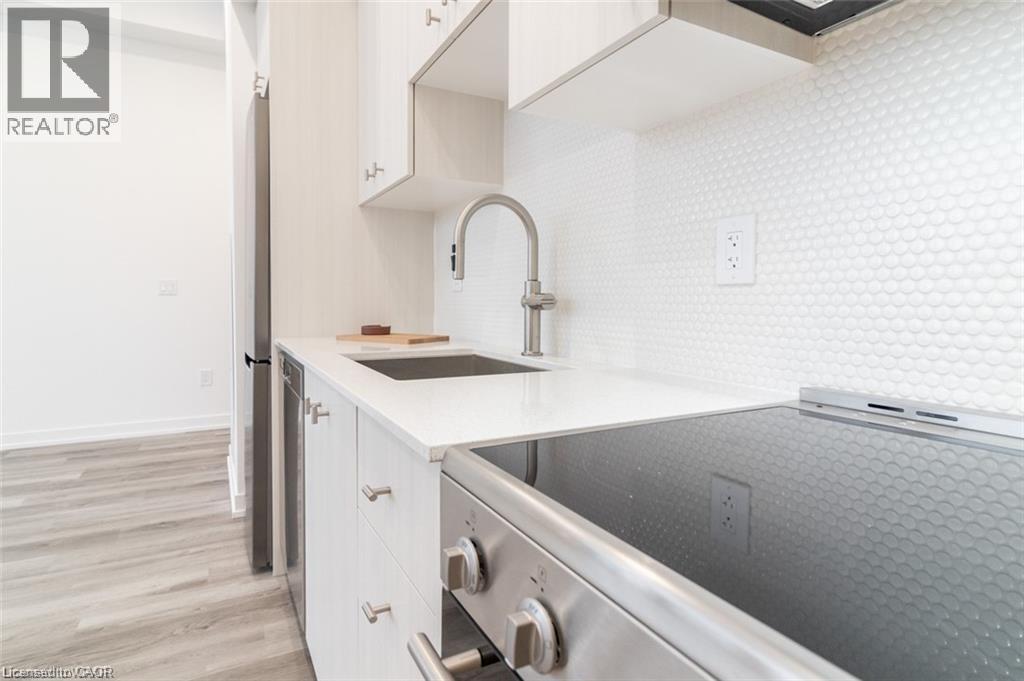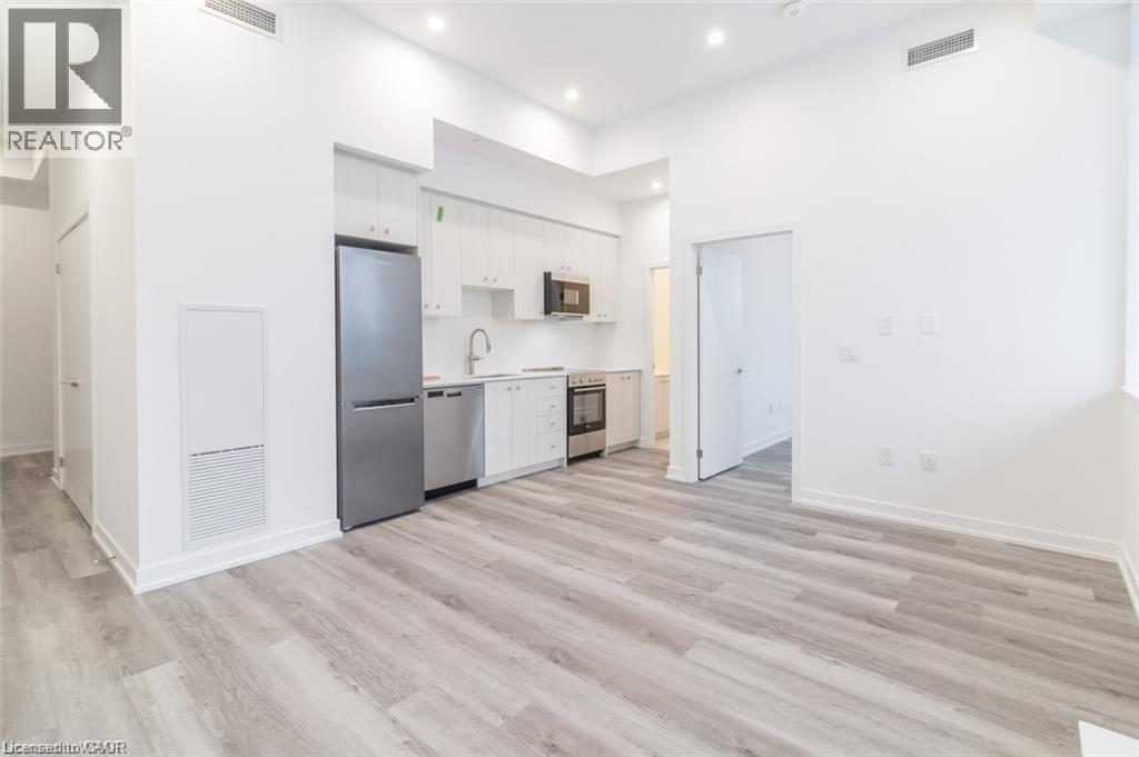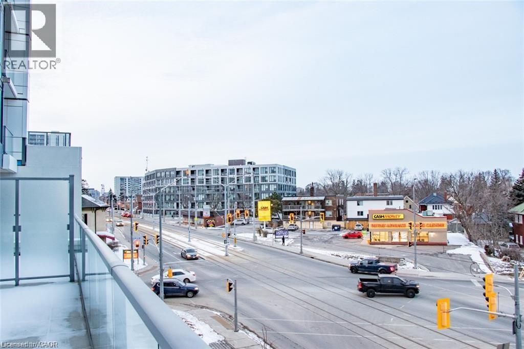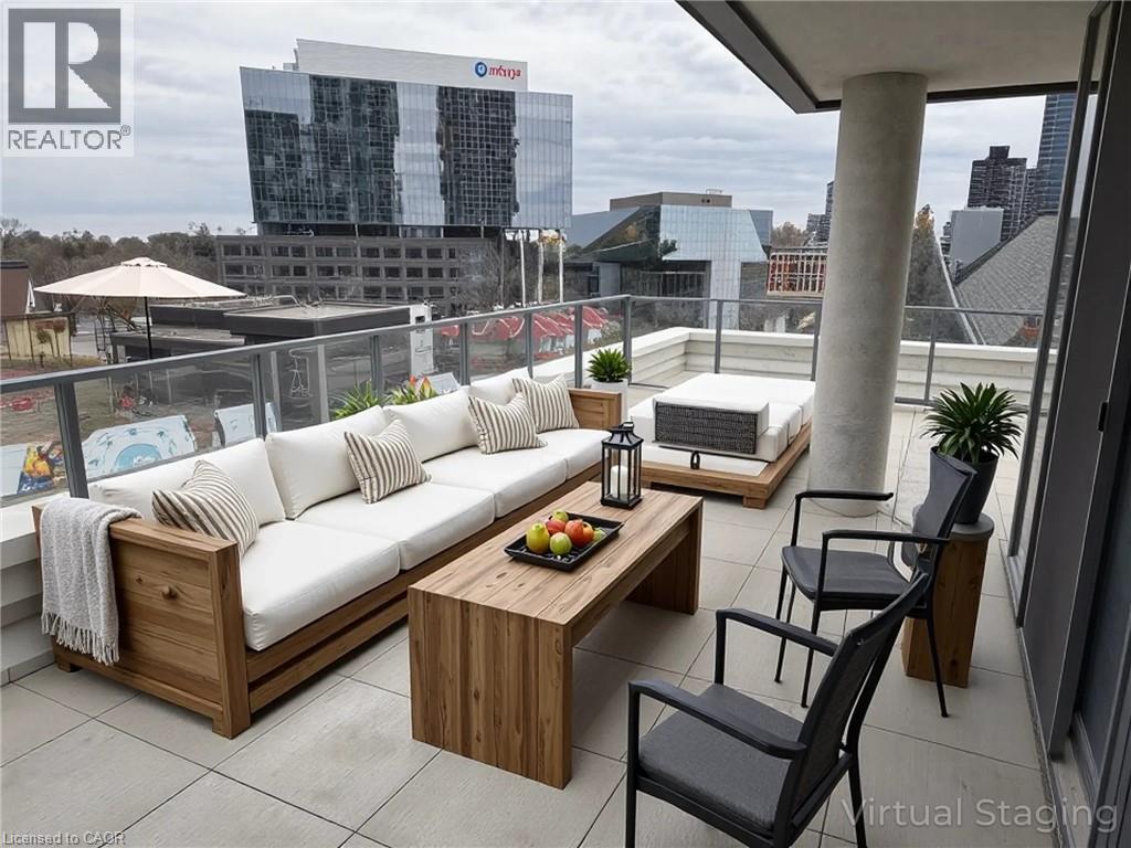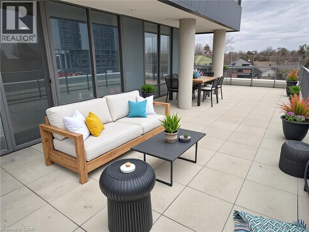 This beautiful 1-bedroom corner unit offers a massive 820 sqft wrap around balcony and is centrally located in the trendy Station Park in downtown Kitchener. Enjoy a carefree lifestyle of luxury and comfort, with countless features you will absolutely love. This unit comes with 1 underground unassigned parking spot, but a SECOND underground unassigned parking spot can be available if needed for an additional monthly cost. This Podium suite boasts 11' ceilings and an open-concept design, enhanced by floor-to-ceiling windows that fill the space with natural light. The living/dining and bedroom areas grant access to the massive L-shaped terrace, perfect for entertaining and letting your pets roam freely - it really is like being in your own private backyard. The modern kitchen includes stainless steel appliances, Caesarstone countertops, and a stylish backsplash, while the bathroom features glossy white wall tiles, matte floor tiles, and an enclosed glass shower. For your convenience, an in-suite stackable washer and dryer is included. Amenities You'll Love: Bowling alley with lounge area and bar, private hydro pool swim spa and hot tub, comprehensive fitness center with yoga and Peloton studio, Dog washing station, landscaped outdoor terrace, Concierge service, private dining room with kitchen, Secure smart parcel locker system and includes BELL FIBRE internet. Exciting future amenities are planned, including an outdoor skating rink, ground floor restaurants and dog park. This unit is steps away from the new transit hub, across from Google, shopping, restaurants, just minutes to the highways and more. LRT access is conveniently located on King Street, with both universities within a 15-minute commute. (70054926)
