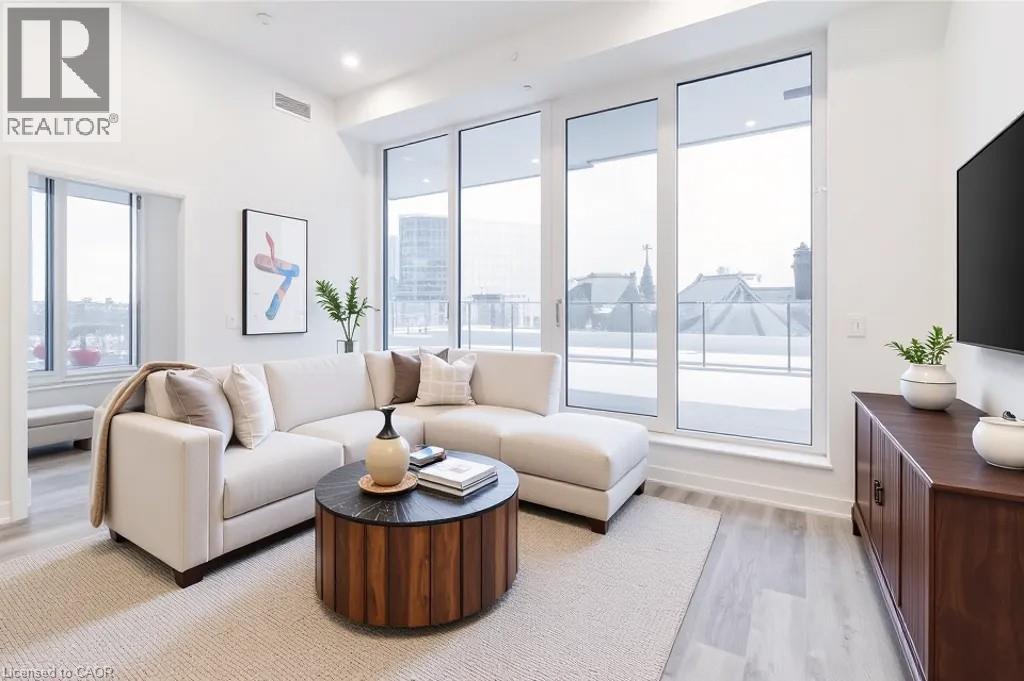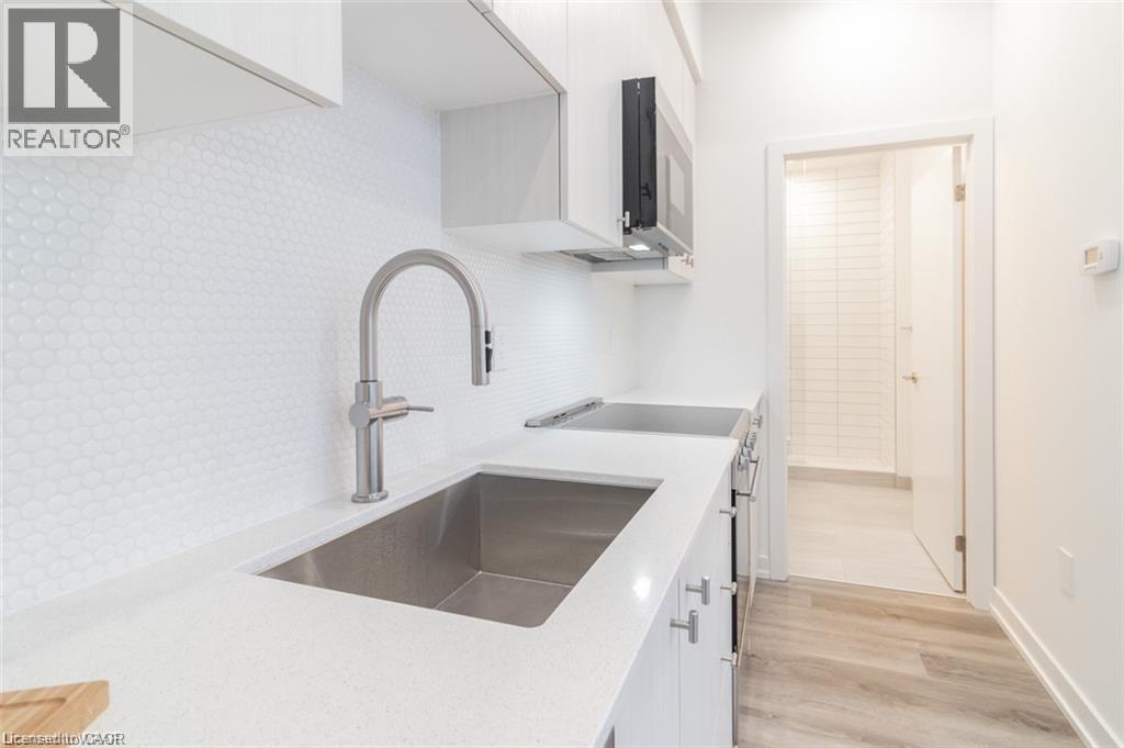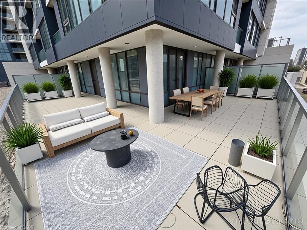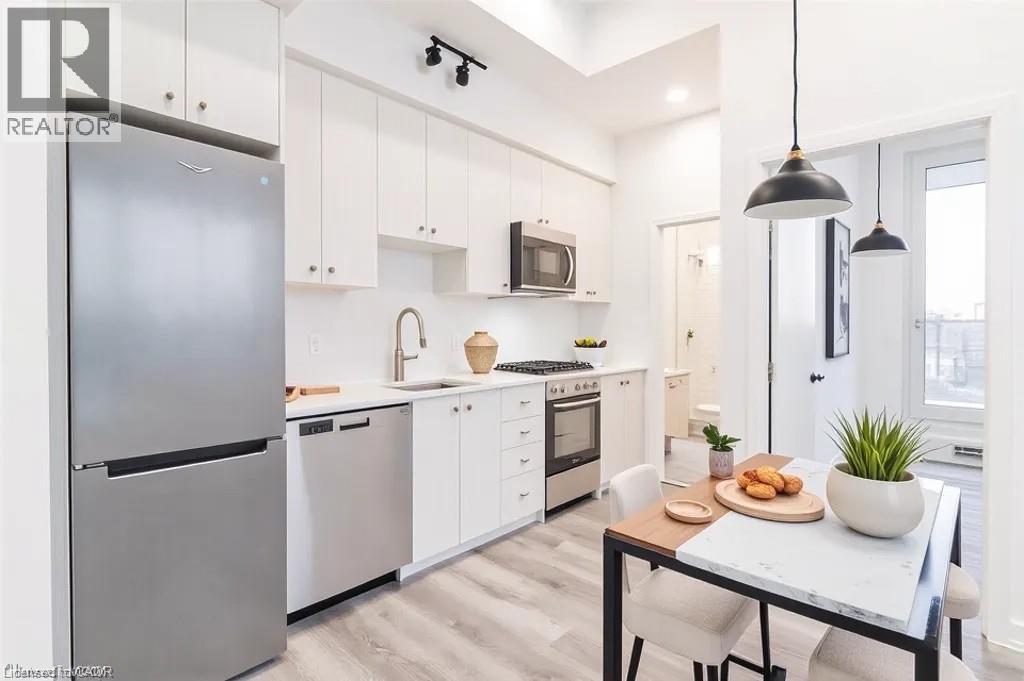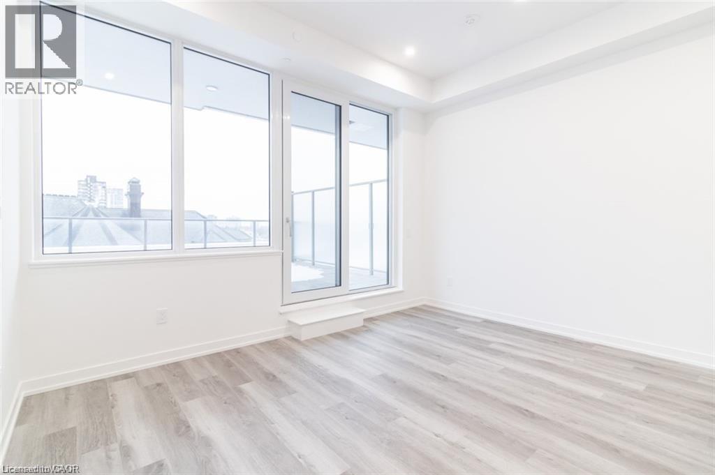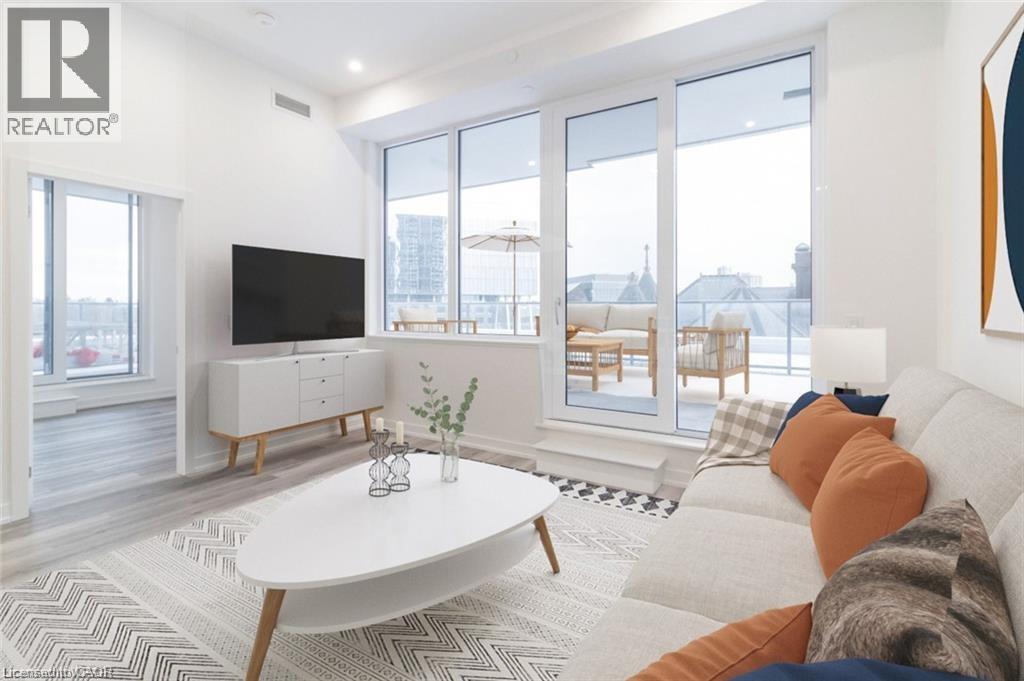 This beautiful 1-bedroom corner unit offers a massive 820 sqft wrap around balcony and is centrally located in the trendy Station Park in downtown Kitchener. Enjoy a carefree lifestyle of luxury and comfort, with countless features you will absolutely love. This unit comes with 1 underground unassigned parking spot, but a SECOND underground unassigned parking spot can be available if needed for an additional monthly cost. This Podium suite boasts 11' ceilings and an open-concept design, enhanced by floor-to-ceiling windows that fill the space with natural light. The living/dining and bedroom areas grant access to the massive L-shaped terrace, perfect for entertaining and letting your pets roam freely - it really is like being in your own private backyard. The modern kitchen includes stainless steel appliances, Caesarstone countertops, and a stylish backsplash, while the bathroom features glossy white wall tiles, matte floor tiles, and an enclosed glass shower. For your convenience, an in-suite stackable washer and dryer is included. Amenities You'll Love: Bowling alley with lounge area and bar, private hydro pool swim spa and hot tub, comprehensive fitness center with yoga and Peloton studio, Dog washing station, landscaped outdoor terrace, Concierge service, private dining room with kitchen, Secure smart parcel locker system and includes BELL FIBRE internet. Exciting future amenities are planned, including an outdoor skating rink, ground floor restaurants and dog park. This unit is steps away from the new transit hub, across from Google, shopping, restaurants, just minutes to the highways and more. LRT access is conveniently located on King Street, with both universities within a 15-minute commute. (70054926)
