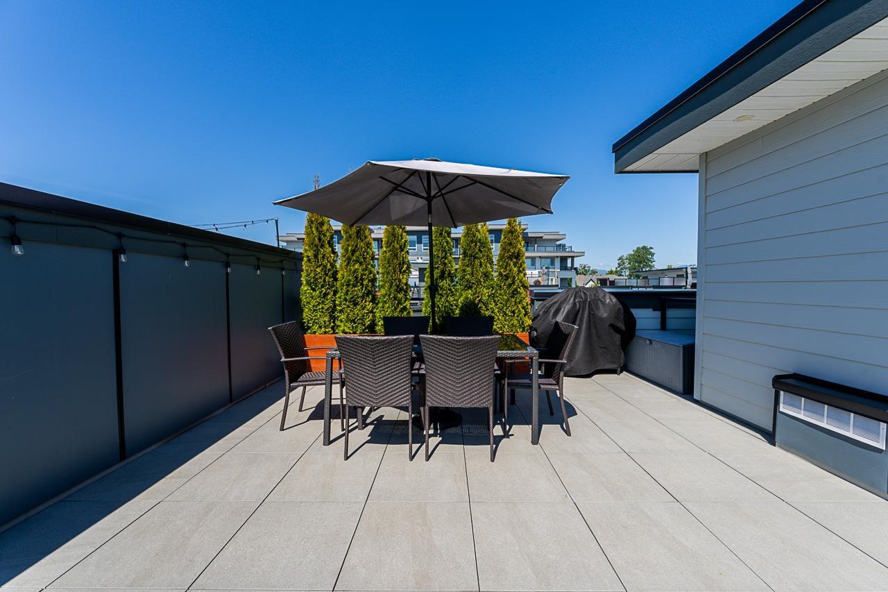 Welcome to the ever popular Cinema District! This stunning modern 3-bed, 3-bathroom townhouse in Abbotsford's University District features an open concept main living area, with quartz countertops, stainless steel appliances, and includes A/C and a massive roof top patio with breathtaking views of Mt. Baker. Featuring a 2-car garage with access to your own private backyard, perfect for pets or someone with a green thumb to grow their own vegetables. Located within walking distance of the University of the Fraser Valley, Rogers Forum, McCallum Junction shops and restaurants, and Highway 1 for commuters. This one is not to be missed! (32336911)