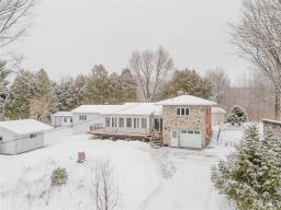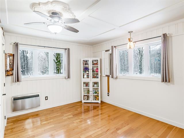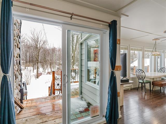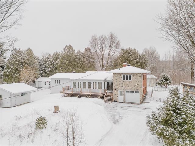 PEACEFUL HAVEN, NATURE & BIRD SANCTUARY! Private wooded setting in Domaine La Falaise.This unique property offers privileged access to the lake Champlain and a highly sought-after peaceful lifestyle. A sun filled four season solarium, 4 bedrooms, 2 bathrooms and a powder room, hardwood floors, and a wood-burning fireplace create a warm and inviting atmosphere. The spectacular lot features gardens, mature trees, a pond, and thoughtfully designed outdoor spaces. A big garage, insulated workshop, multiple storage sheds, and a heated above-ground pool complete the property. A true retreat for nature lovers seeking tranquility and outdoor living. (43355285)