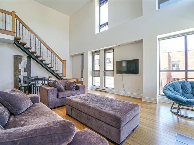 Exceptionally airy and spacious recent-construction corner penthouse in the heart of the Plateau. With soaring ceilings, an open-concept floorplan with gorgeous mezzanine, two bedrooms, two bathrooms, access to the superb rooftop terrace with sweeping mountain and neighborhood views and a garage spot. (48897004)