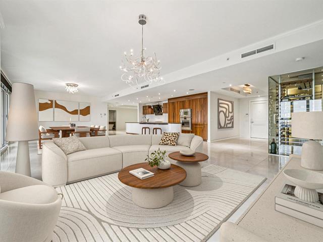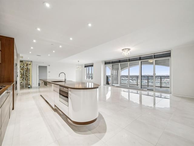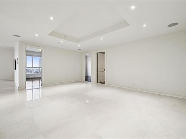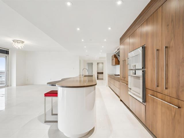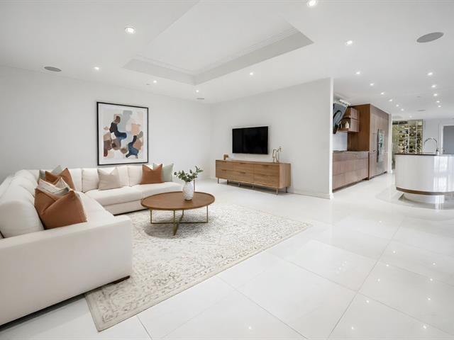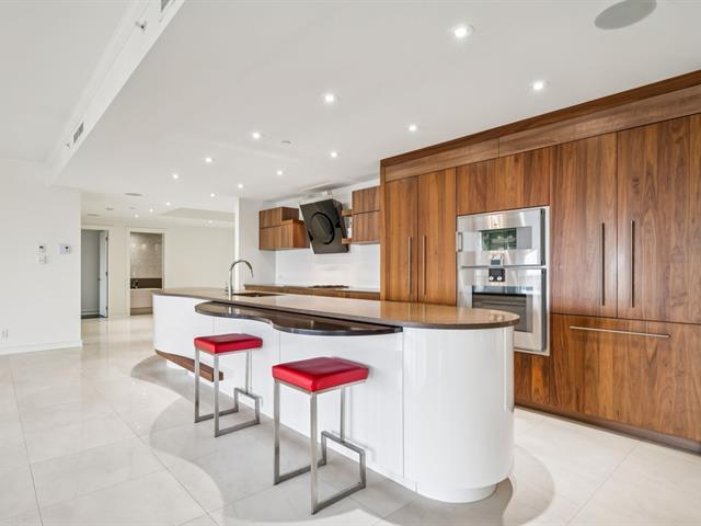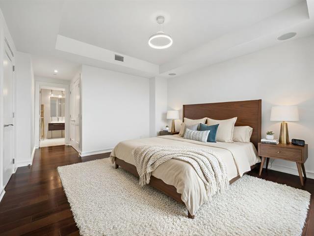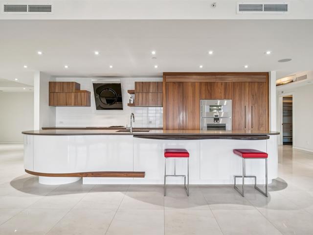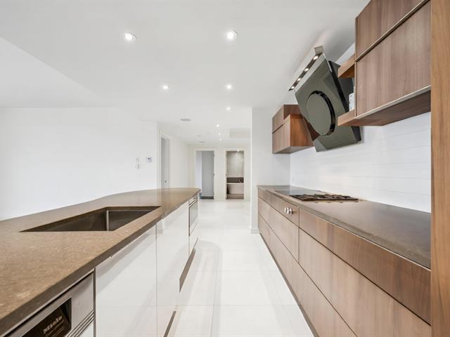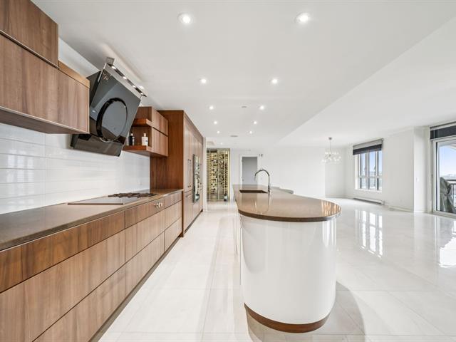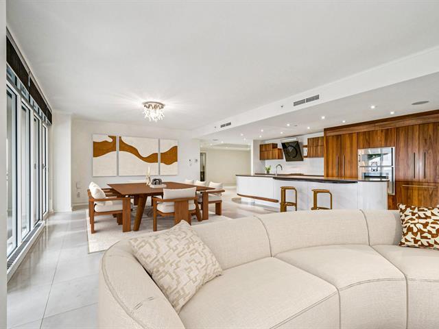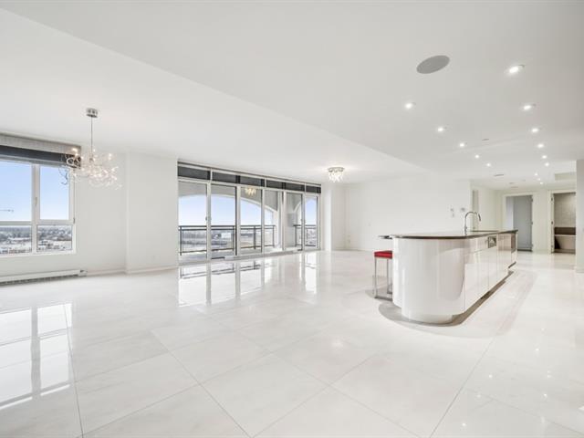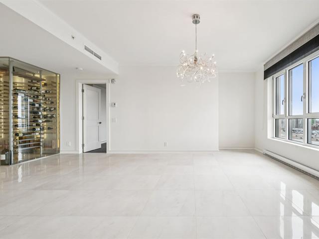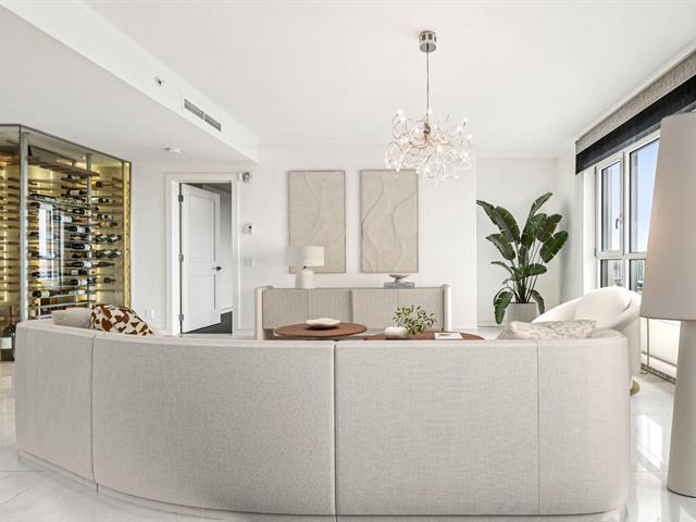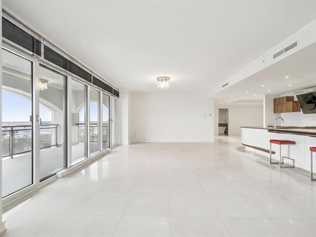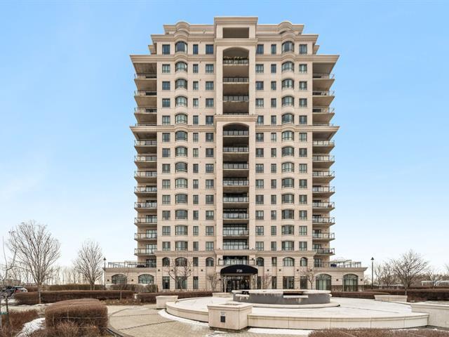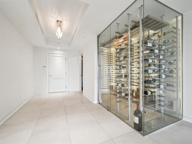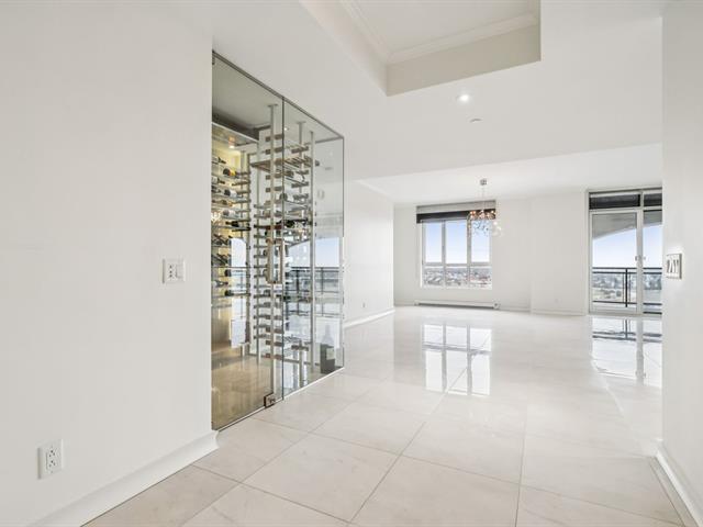 Modern and spacious condo located at Quintessence. The unit features 3 bedrooms, 2 bathrooms, a large living room, a separate den, a modern kitchen, and a glass-enclosed wine cellar, all in impeccable condition. You will also enjoy a large private terrace with panoramic views, two indoor garage parking spaces, and two storage units. Several amenities are offered, including an outdoor in-ground swimming pool, a sauna, a fitness room, and a community room. Ideally located close to all services and major roadways, within walking distance of Marché 440. (56847085)