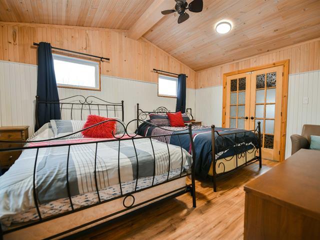 Beau chalet clé en main au bord de l'eau offrant une vue imprenable sur le lac navigable et la montagne, incluant tous les équipements, meubles, meublants, électroménager et décoration du chalet. Il propose une aire ouverte lumineuse au rez-de-chaussée avec salon, cuisine et salle à manger entourés de fenestration. À l'étage, on retrouve deux chambres, un bureau et une salle de bain. Terrain plat, boisé et clôturé de 7 097 pi² avec accès direct au lac et stationnement pour 5 voitures. Un cadre paisible et enchanteur, idéal pour profiter pleinement de la nature tout en restant à proximité des services. Pour plus d'infos, voir fiche détaillée ! (38449384)
