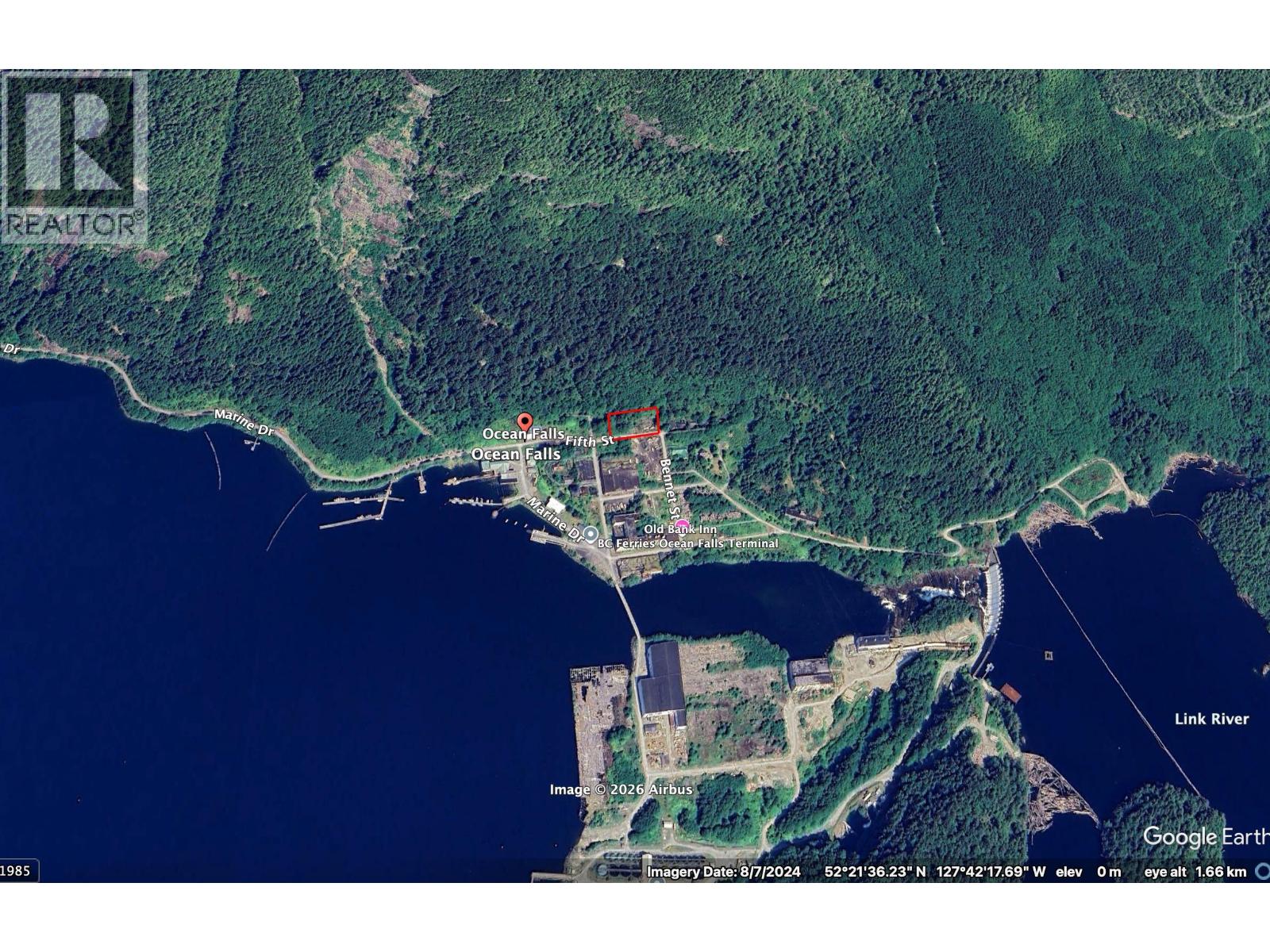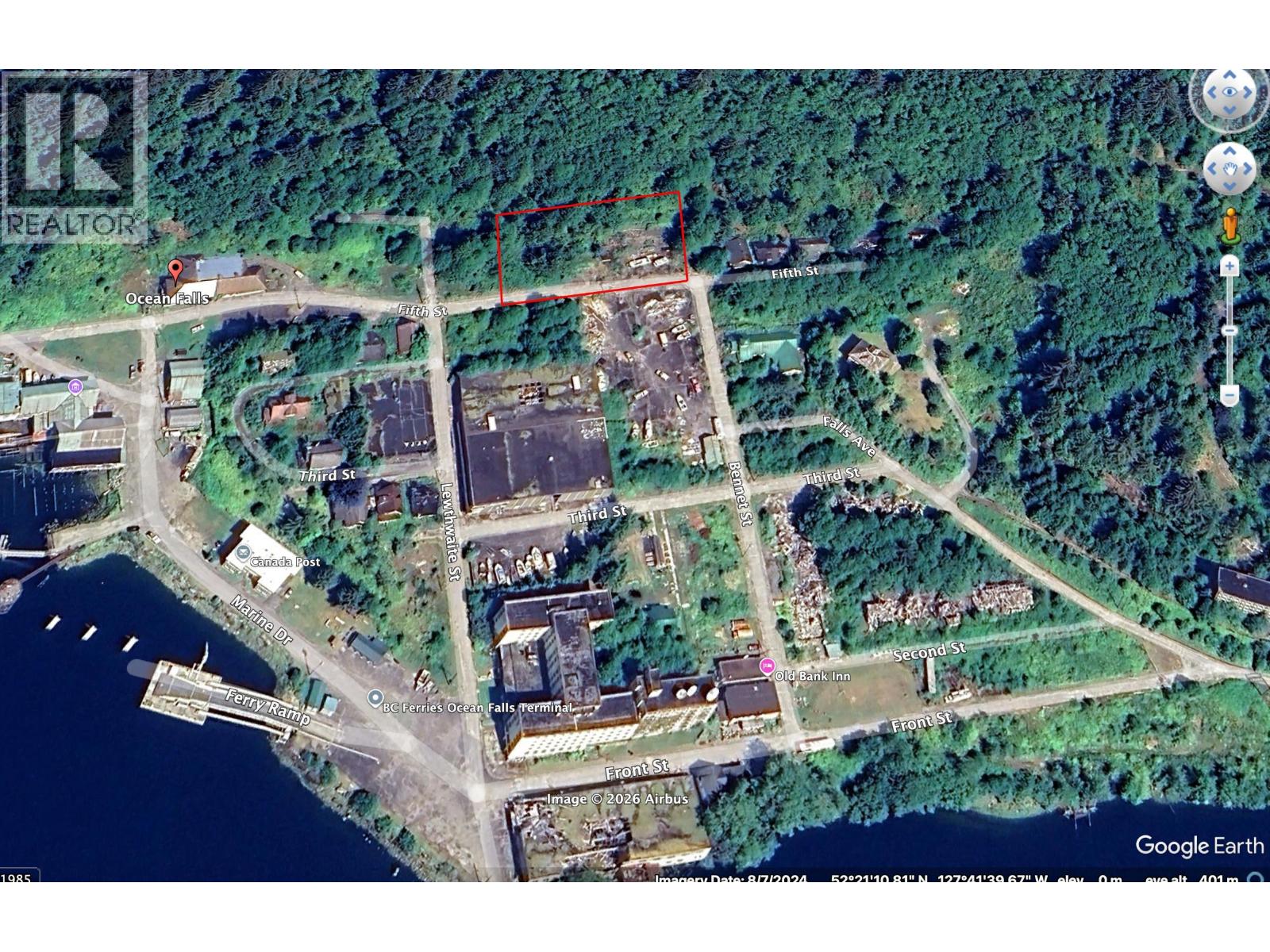0.83-acre bare lot in the Ocean Falls townsite with road access directly from the ferry terminal. Services are available at the lot line through the Ocean Falls Improvement District. There is no zoning in the area, offering excellent flexibility for development. The property is currently overgrown but could be easily cleared and ready for a summer home, recreational retreat, or remote family residence with potential ocean views. Ocean Falls is renowned for outstanding fishing, including salmon, halibut, prawns, and crab right out front, with countless sheltered inlets and rivers nearby. A rare opportunity to build in a historic coastal community surrounded by pristine wilderness. (32337330)
