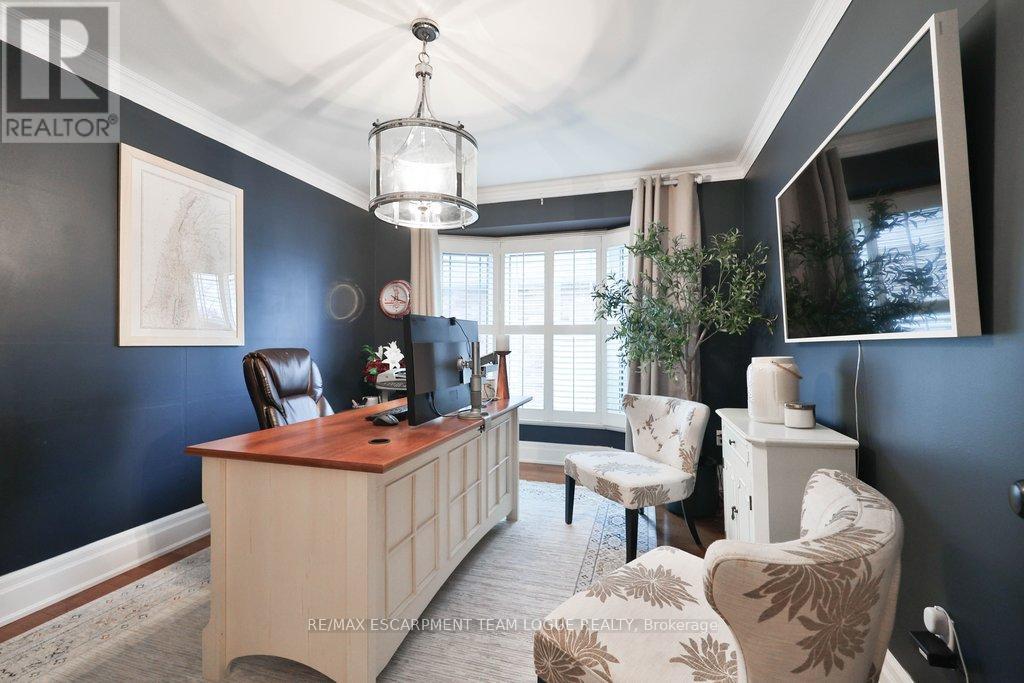 Welcome home. Incredible detached family home in the heart of Millcroft. Step inside the welcoming foyer and you'll immediately envision this as your forever family home. Rich hardwood floors and custom wall treatments throughout the main level set the tone for timeless elegance. Designed with both comfort and entertaining in mind, the home features a fantastic layout including a formal sunken living room with a cozy fireplace and a formal dining room accented by elegant French doors. The white wraparound kitchen offers stone countertops, a sun-filled breakfast area, a working island with seating, a coffee bar, and a convenient server...perfect for hosting family and friends. The adjacent family room is ideal for movie nights, while a dedicated main-floor office is thoughtfully tucked away for quiet moments. A laundry room with direct garage access keeps the main floor organized and functional. The upper level boasts an oversized primary retreat complete with a spacious sitting area, walk-in closet, and a luxurious 5-piece ensuite featuring dual vanities, a glass shower, claw-foot tub, and private water closet. Four additional generously sized bedrooms and a 5-piece family bath complete this level. The finished lower level offers exceptional versatility with a bright rec room featuring egress windows, a games room, guest bedroom, and a 3-piece bath with sauna-an ideal space for guests, teens, or extended family. Outside, summer can't come soon enough. Enjoy the inground pool with waterfall feature, entertain on the upper deck, or relax on the lower deck with multiple seating areas designed for effortless outdoor living. (41958752)