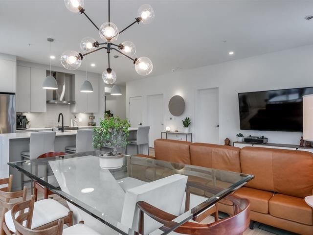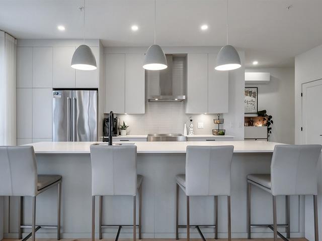 Bienvenue au Mélius, un superbe complexe offrant des aires communes haut de gamme, dont un gym, un lounge, des piscines creusées et un jardin communautaire. Ce condo propose 2 chambres à coucher et un vaste espace de vie à aire ouverte avec plafonds de 9 pieds et une très grande fenestration assurant une luminosité abondante. La cuisine est dotée d'un îlot de grande dimension et de nombreuses armoires. Salle de bain luxueuse avec plancher chauffant. Deux garages et un espace de rangement complètent l'ensemble. (39198028)