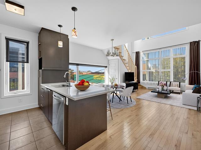 Stunning corner condo located just steps from Little Italy, the Jean-Talon Market, De Castelnau metro station, Parc train station and Jarry Park. This bright unit features large windows on three sides, flooding the space with natural light. The open-concept living area includes a spacious living room, dining area, and a modern kitchen with ample storage. The condo offers three bedrooms, including a primary suite with a private ensuite bathroom and direct access to one of the two private terraces. A second full bathroom, an indoor garage, and three storage spaces complete the property. Ideally located near cafés, restaurants, and local shops. (57422517)