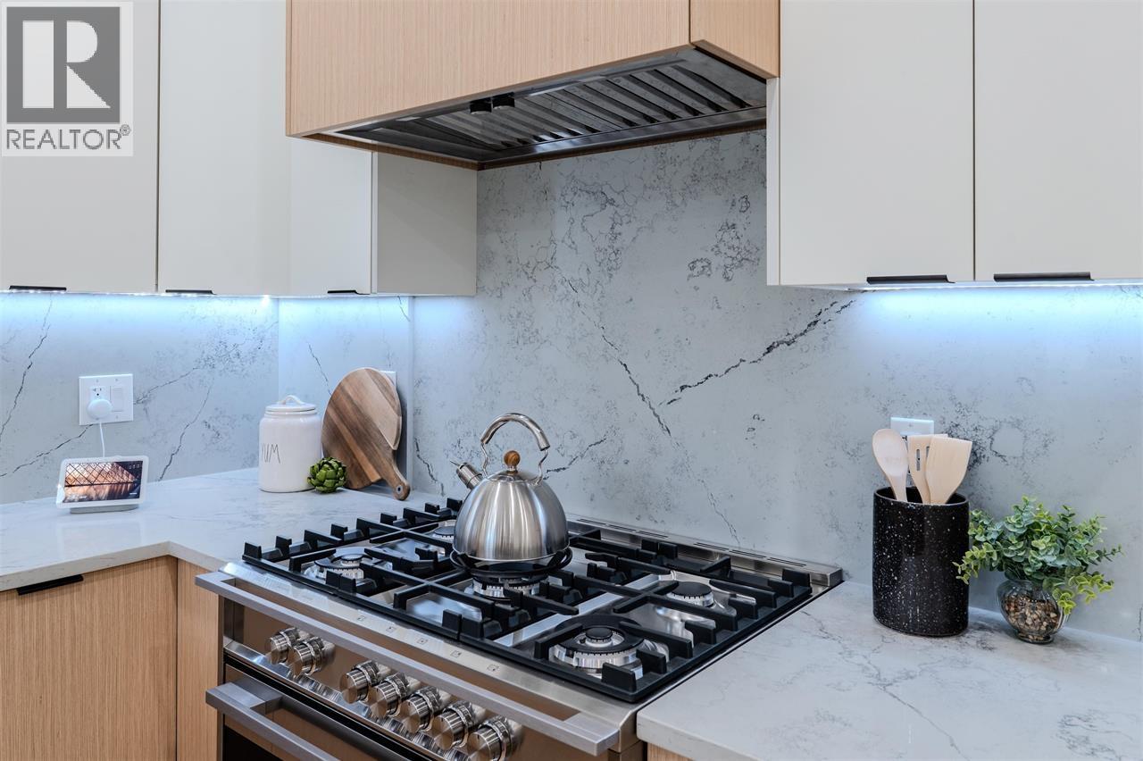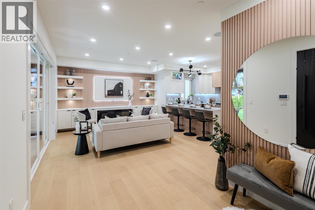 The Pender Vista Collection presents a brand new front half duplex offering 4 bedrooms and 4 bathrooms across approximately 1,700 sq.ft. on a rare 33 x 155 lot with a spacious front yard and panoramic city and mountain views. This thoughtfully designed home features engineered hardwood flooring, custom millwork, designer lighting, and smart home technology. The chef´s kitchen is equipped with waterfall quartz countertops, Fisher and Paykel appliances, gas cooking, and ample storage. Spa-inspired bathrooms with full-height tile, air conditioning, and on-demand hot water provide modern comfort. A top-floor balcony offers the perfect place to relax and enjoy the views. Ideally located steps to parks, cafes, shops, transit, Highway 1, Brentwood Town Centre, and Downtown Vancouver. OPEN HOUSE SATURDAY/SUNDAY 1-4PM (32337560)