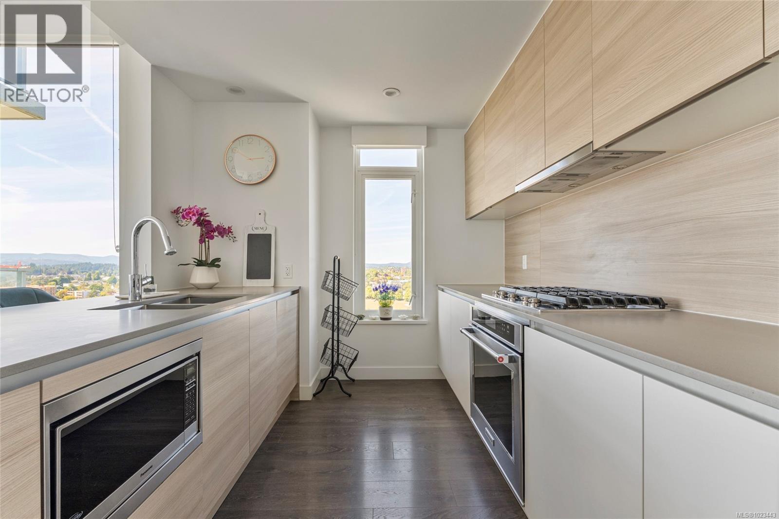 Welcome to the Encore at Bayview, where luxury and lifestyle meet. This spacious 2 bed, 2 bath condo offers 1,061 sq ft of modern living with high-quality finishes throughout. The open concept kitchen features sleek quartz countertops, stainless steel appliances, a gas cooktop, and ample storage. Bright and airy, the living space is enhanced by wide plank laminate flooring and large windows that flood the home with natural light. The spa-inspired bathrooms include tile flooring, quartz counters and contemporary fixtures. Enjoy incredible southwest exposure from both the living area and private balcony - perfect for soaking up the sun and taking in the views. The Encore is known for its exceptional amenities, including a fully equipped gym, outdoor pool with lounge areas, guest suite, bike storage, and inviting common spaces for entertaining. Ideally located in one of Victoria’s most sought-after neighbourhoods, this condo combines comfort, convenience, and resort-style living. (30281055)