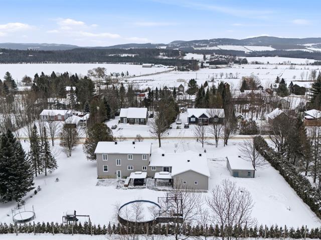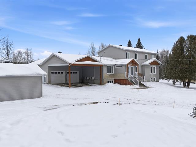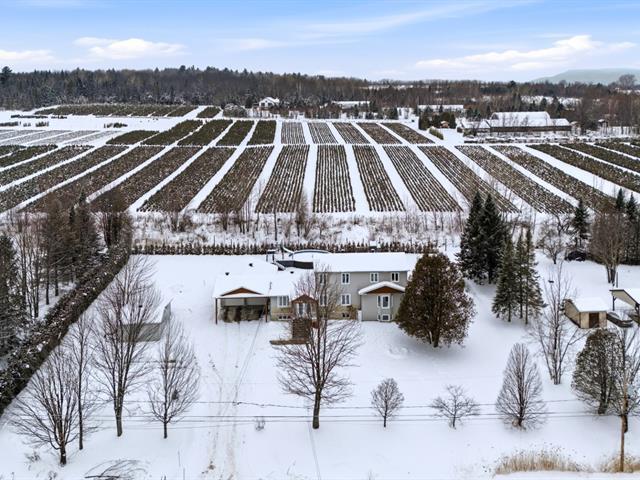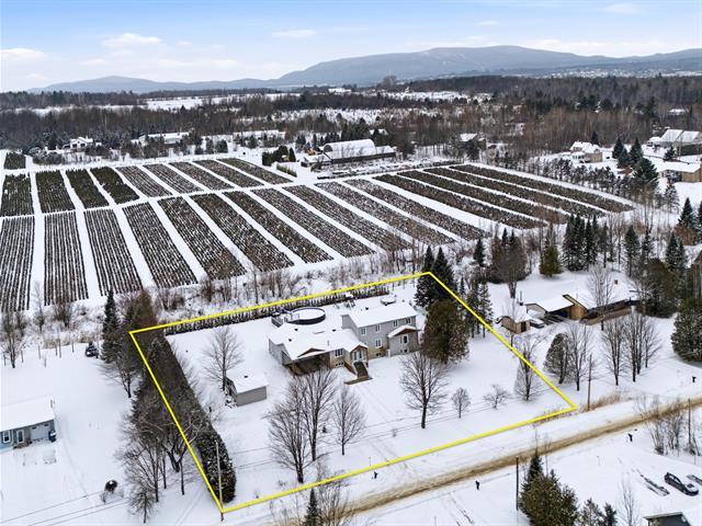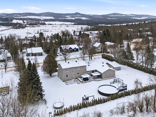 Discover this spacious country home located in a peaceful area of Sainte-Catherine-de-Hatley. Impeccably maintained, it offers 7 bedrooms and 4 bathrooms. Open-concept kitchen, living room, and dining room. Large entrance hall with heated floors. Fully finished basement with separate entrance, ideal for a two-generation home. Attached double garage. Double carport with stamped concrete slab. Two large sheds for additional storage. Private lot bordered by hedges with an above-ground pool and composite patio. Perfect residence for a large family or for an intergenerational living arrangement. Easy access to highway 55 and 10. (46124394)