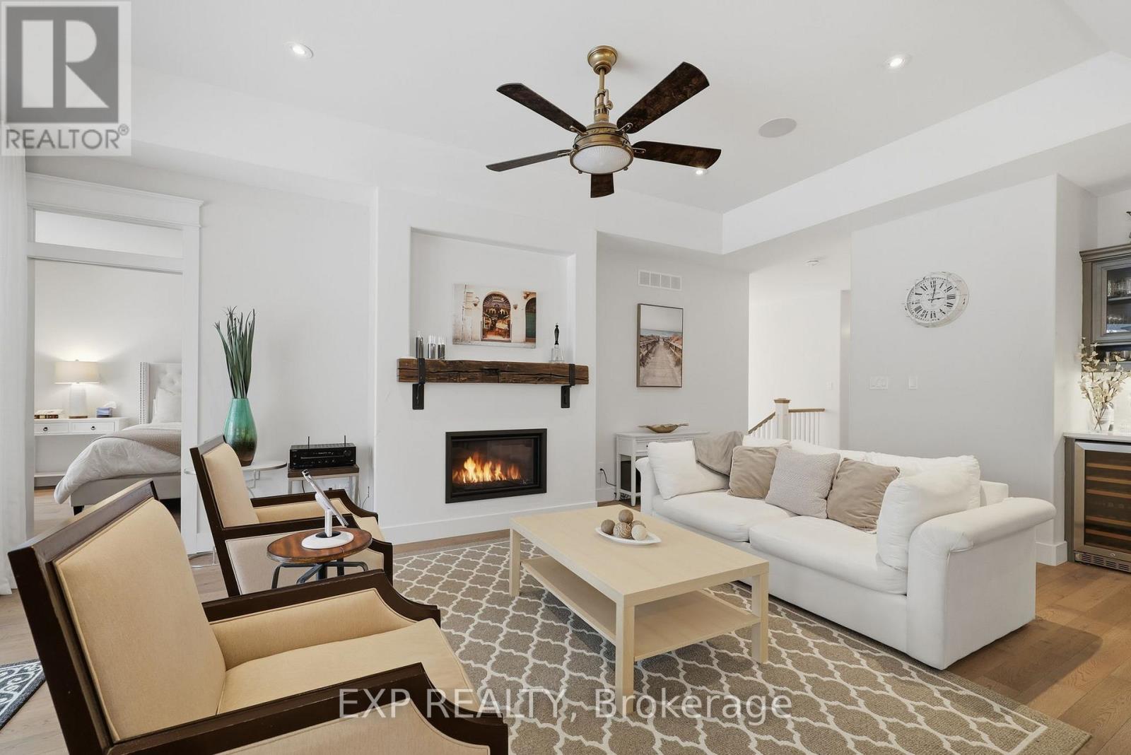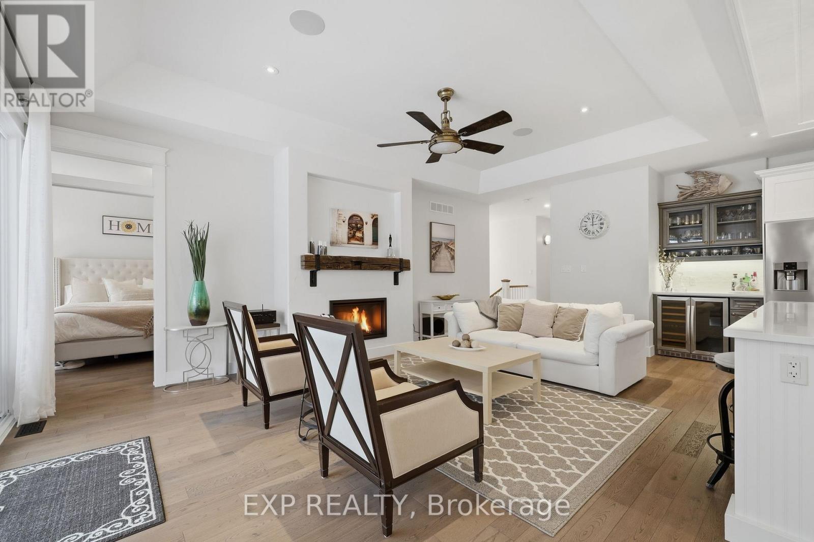 Experience Luxury Waterfront Living that leads right into Lake Huron! A stunning custom bungalow by award-winning Medway Homes Inc. Ideally situated along the Ausable River in the heart of Grand Bend. Built in 2017, this exceptional home offers over 3,000 sq ft of beautifully finished living space. Say hello to luxury, functionality, and refined riverfront living! A select few have the privilege to keep their boat at their very own private dock. The deceiving curb appeal keeps this gem hidden and private. An oversized 33-ft garage with 13-ft ceilings and an 11-ft door-designed to easily accommodate a 23-ft boat. Step into a private, resort-style backyard featuring a brand-new 42-ft, three-level dock with dinghy hoist, stamped concrete patio with built-in fire pit. At the house is a two-tier deck with partial coverage, BBQ area, and hot tub perfect for entertaining or unwinding in total privacy. Inside, 9-ft ceilings and a bright open-concept meet the chef-inspired kitchen. Offers quartz countertops, modern appliances, and a large island ideal for hosting. The living area is anchored by a gas fireplace and oversized patio doors showcasing tranquil river views. A custom mudroom with dog wash station (or kids wash station for that matter... beach life brings the sand) adds thoughtful convenience. The main-floor primary suite is a serene retreat with direct deck and hot tub access, walk-in closet, and a stylish 3-piece ensuite. All bathrooms include in-floor heating. The fully finished basement provides additional space to relax, work, or host guests. Offered fully furnished with curated Brian Gluckstein pieces, this move-in-ready home is complete with privacy fencing on both sides and is just minutes from the beach, marina, and downtown Grand Bend. Please refer to www.lambtonshores.ca/invest-and-build/ for updates on Grand Bends upcoming projects improving the community. A rare opportunity to own a designer riverfront residence with exceptional outdoor amenities. (41959361)