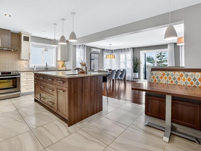Épatante, surprenante et décorée avec goût, grande propriété de plus de 3000 pc (incluant le sous-sol) possédant 6 chambres et 3 salles de bain. Propriété unique idéalement située dans un emplacement de choix sur une rue très tranquille et sans aucun voisin arrière (Parc Pierre-Le Gardeur). À proximité de l'hôpital Pierre-Le Gardeur, des services, magasins et de la gare de Terrebonne, elle allie confort, style et praticité. Ayant bénéficié de rénovations majeures en 2013 lors de l'agrandissement de la propriété sur les 3 étages, cette superbe propriété chaleureuse et impeccablement entretenue se démarque. Voir addenda. (43987189)