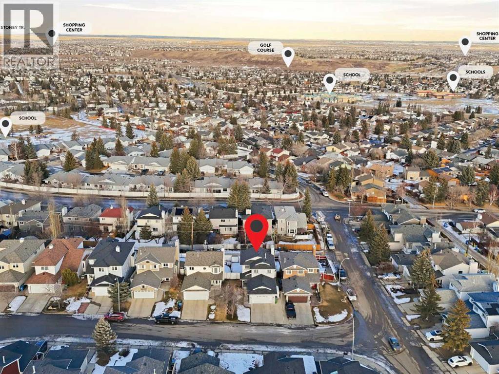 OPEN HOUSE SUNDAY JAN 18th 2-4PM Welcome to this well-maintained two-storey walkout home, ideally situated on a quiet street in the desirable community of MacEwan Glen. Exceptional curb appeal is showcased by mature landscaping, an extra-wide driveway, and a welcoming covered front porch.Inside, the functional floor plan begins with a spacious tiled entryway designed for easy maintenance. The main level features a bright living room with a large front window, a generous dining area, and an updated kitchen that anchors the space with a large central island. The kitchen flows seamlessly into the family room, complete with a cozy gas fireplace. Recent upgrades on this level include luxury vinyl plank flooring, kitchen island, backsplash, sink, cabinet hardware, and updated light fixtures. Abundant natural light fills the kitchen and family room, which open onto an upper deck with a gas line—perfect for outdoor entertaining—with stairs leading to the backyard and lower deck.Upstairs, the primary bedroom offers a walk-in closet and private ensuite, complemented by two additional well-sized bedrooms and a spacious main bathroom. The fully developed walkout lower level provides excellent flexibility with space for a home office or den, a large storage area, and a recreation room featuring a second gas fireplace. The expansive backyard includes two storage sheds and an oversized gate with access to the rear alley.Located just steps from the pathways and parks of Nose Hill, this home offers the perfect balance of comfort, functionality, and an outstanding location. Finally, Carpets replaced 2025. Recently painted and a new class 4 hail resistant roof installed 2025 (31537417)