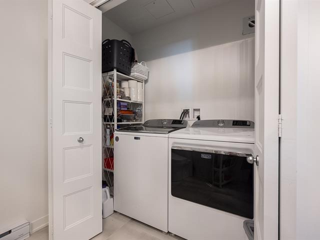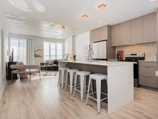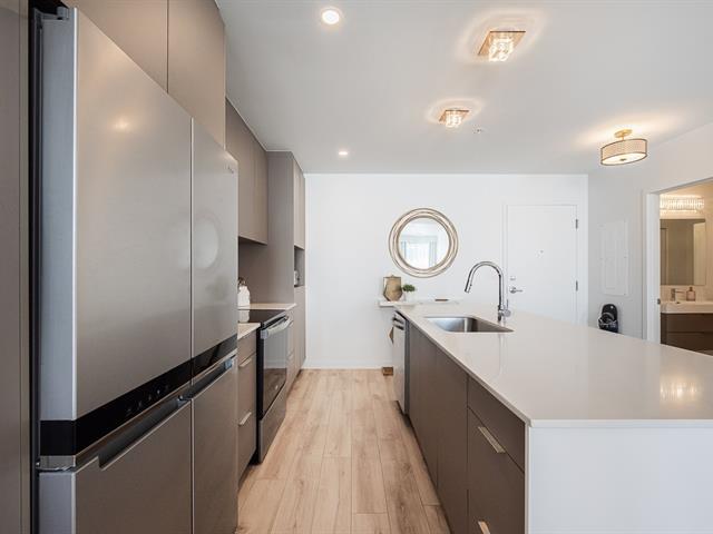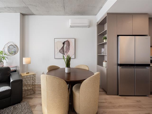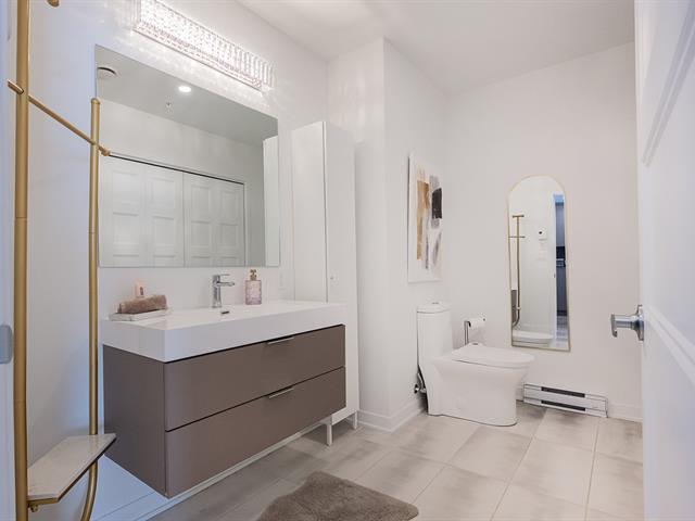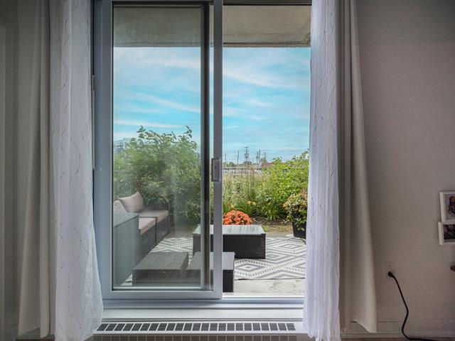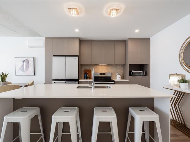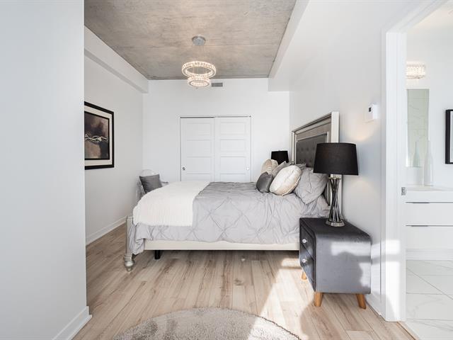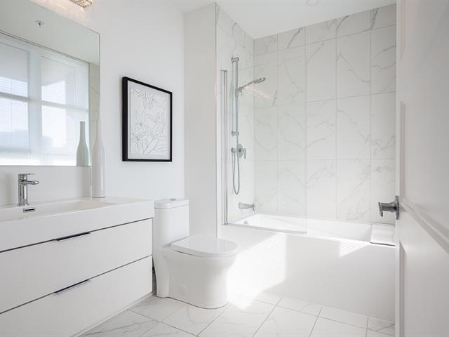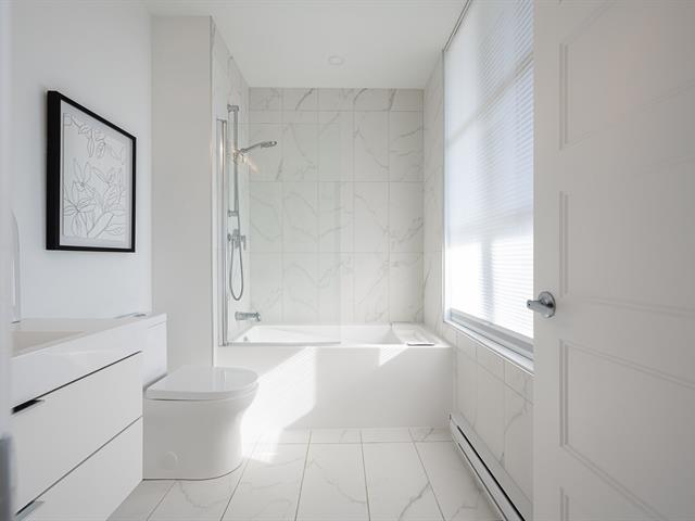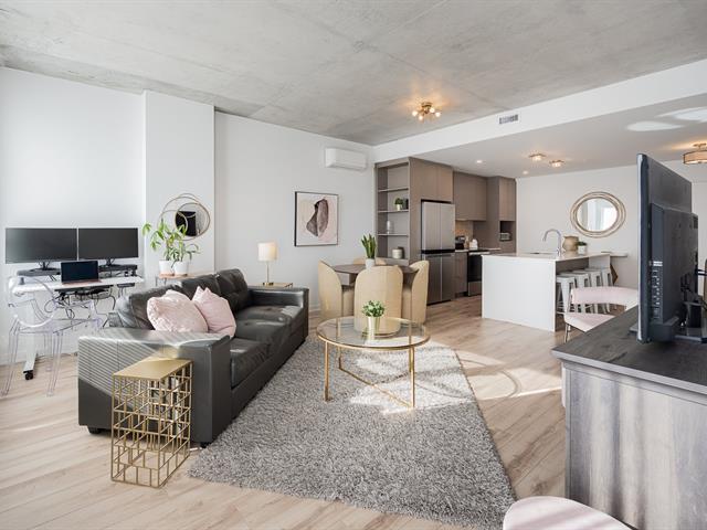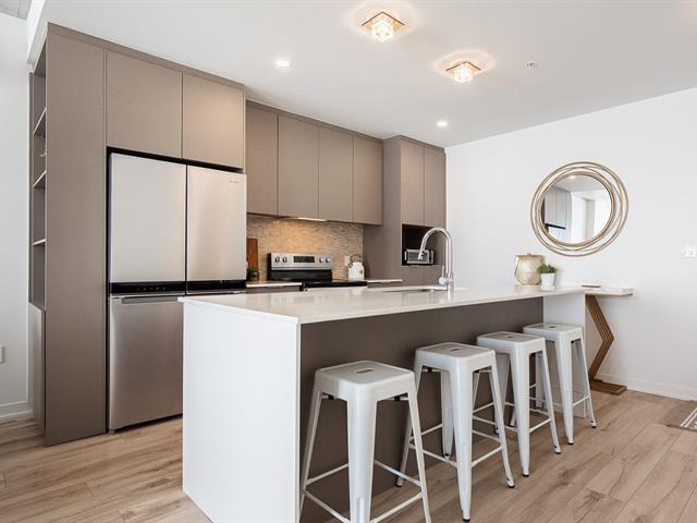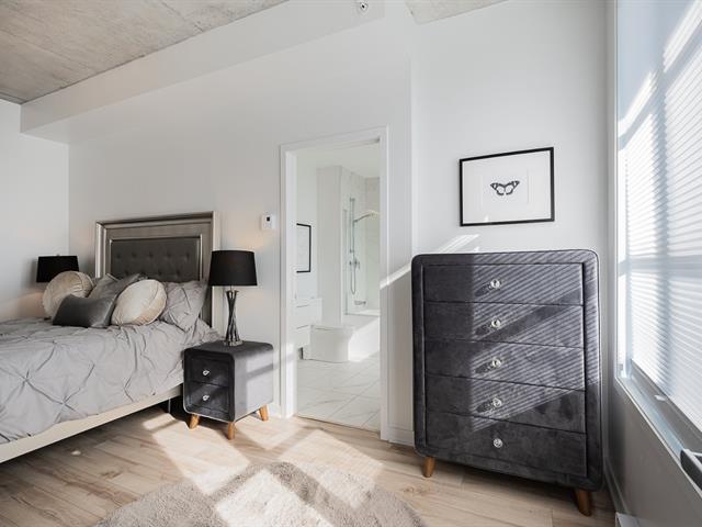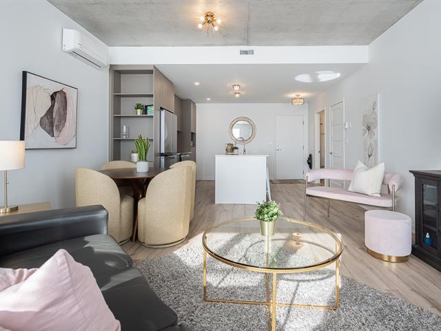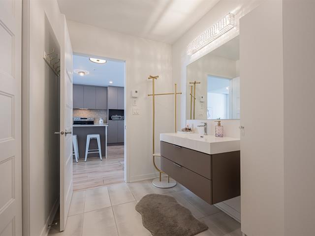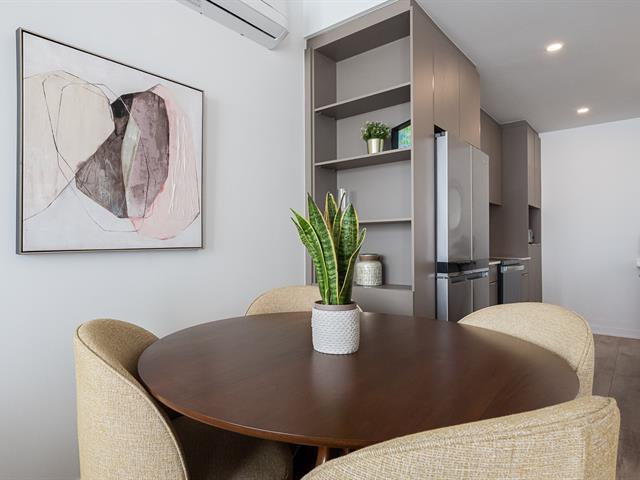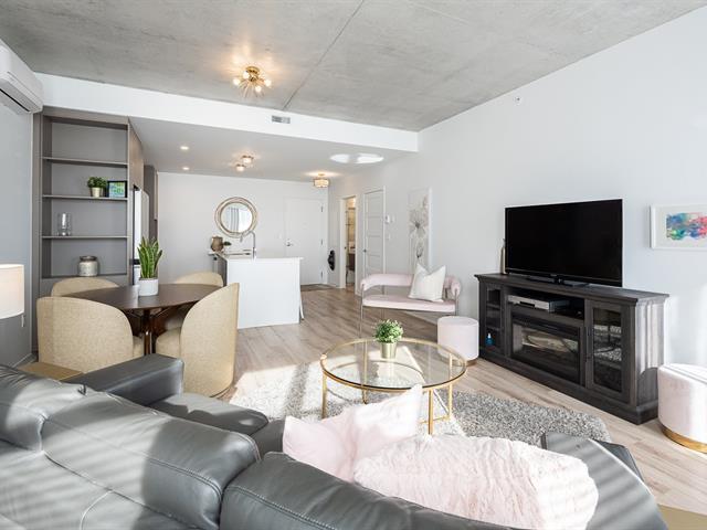 Impeccable and spacious one-bedroom condo offering a very spacious living area. A bathroom adjacent to the bedroom and a powder room with laundry room. Superb private terrace overlooking the pool. You'll also benefit from an indoor parking space and a locker. Located in the CURTISS project, this building offers an indoor pool, outdoor pool, exercise room, reception room and rooftop terrace. What's more, it's just steps from the future REM station and several shops: IGA, Jean-Coutu, restaurants, Première Moisson and much more... Come and visit! (43588692)