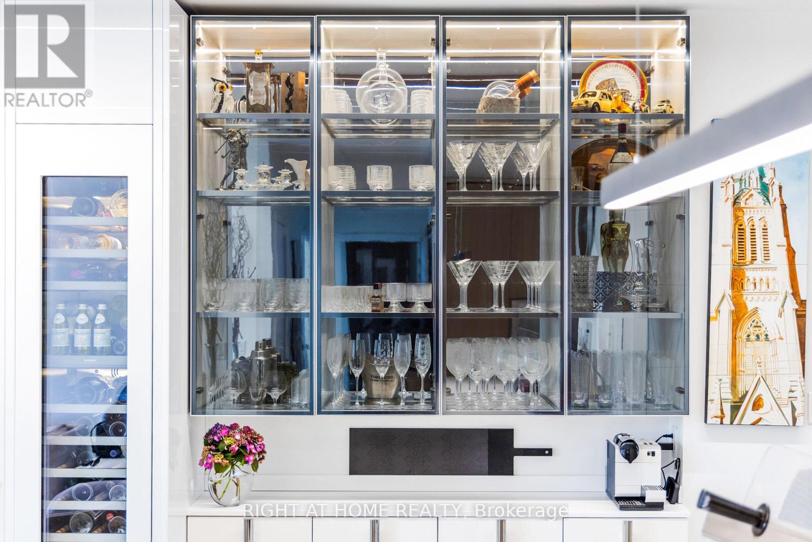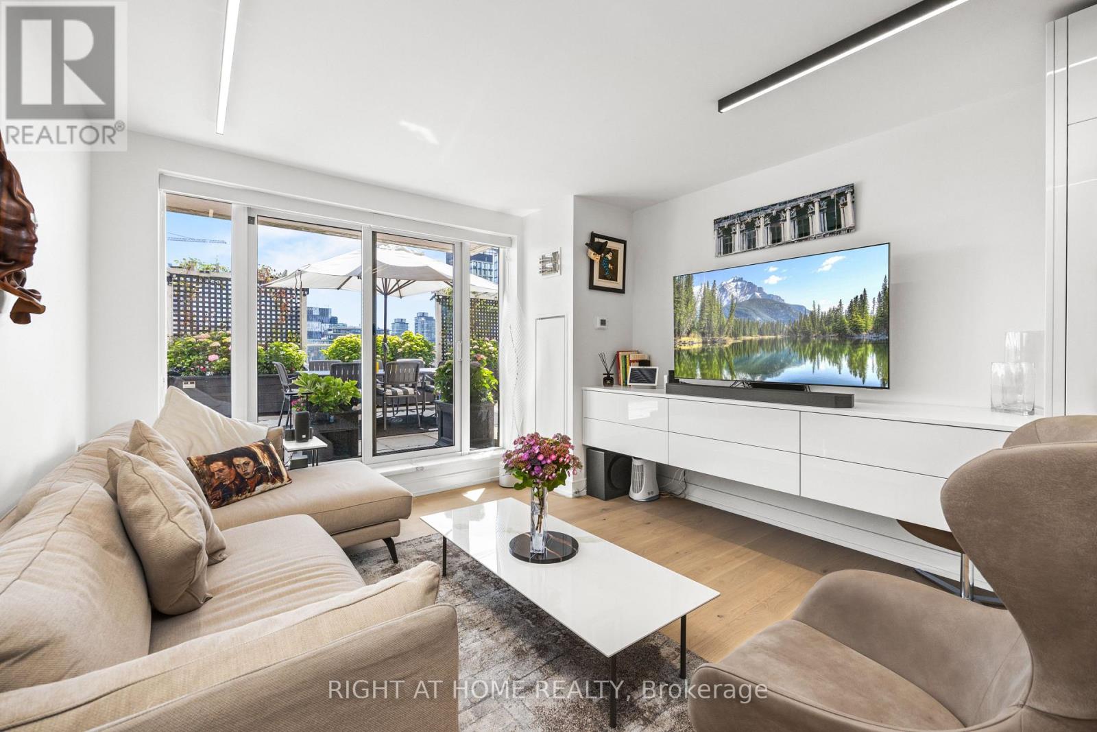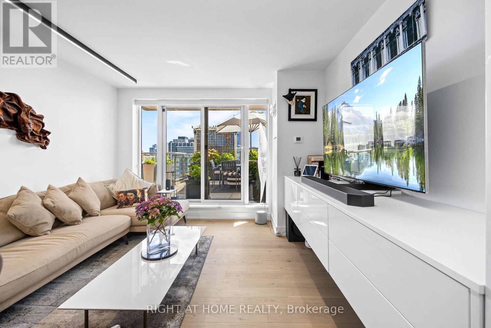An Extraordinary Offering at King George Square, Impeccably Renovated Corner Residence Redefines Luxury Urban Living with a Remarkable approx. 1,400 sqft Private Terrace-a Truly Rare feature in the Heart of Downtown Toronto. Designed for those who value Sophistication, Scale, and Seamless Indoor-Outdoor Living, this 2-bedroom, 2-bathroom suite delivers an Unparalleled Lifestyle Experience. The Refined interior Showcases a Thoughtfully Curated Open-Concept Layout, Bathed in Natural Light from its Southeast Exposure. The Bespoke Chef's Kitchen is outfitted with Premium Gaggenau Integrated Appliances including a 24" Gaggenau Wine Fridge, Sleek Custom Cabinetry, and Elegant Finishes, flowing effortlessly into the living and dining spaces-perfect for both Intimate Evenings and Elevated Entertaining. Custom built-ins, including a Stylish Bar and Wine Storage, add a layer of understated Luxury and Functionality. All Designer Bathrooms & Kitchens Imported from Italy. The Primary Bedroom Sanctuary features direct access to the Terrace and a beautifully appointed ensuite, offering a serene retreat above the city. The second bedroom, enhanced with a custom CLEI Rotational Bed, Imported from Italy, provides versatility as a Sophisticated Guest Suite or Executive Home Office. This Exceptional Residence is complemented with 1 underground parking space, a storage locker, along with Exclusive Building Amenities including 24-hr Concierge Service, Fitness Centre, Party & Meeting rooms, and a Rooftop Garden. Perfectly positioned just steps from St. Lawrence Market, the Distillery District, Premier Dining, Transit, and The Waterfront, this is a Rare Opportunity to own a Statement Home offering Privacy, Prestige, and Expansive Outdoor Living in the City's Core. (41959968)