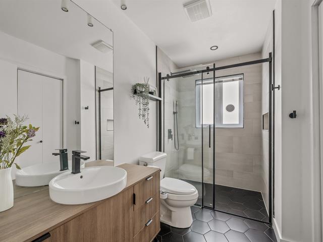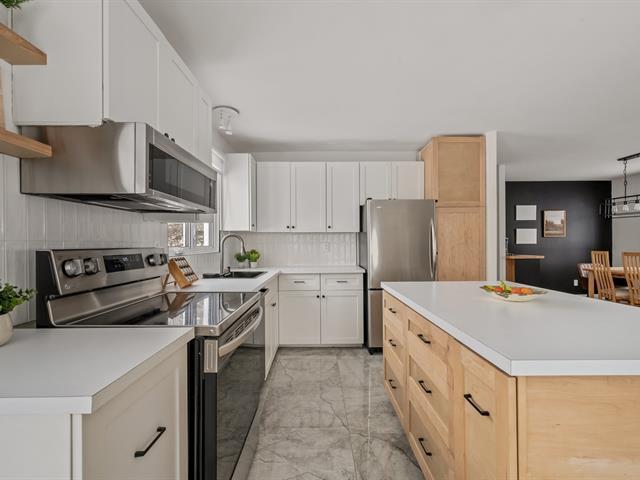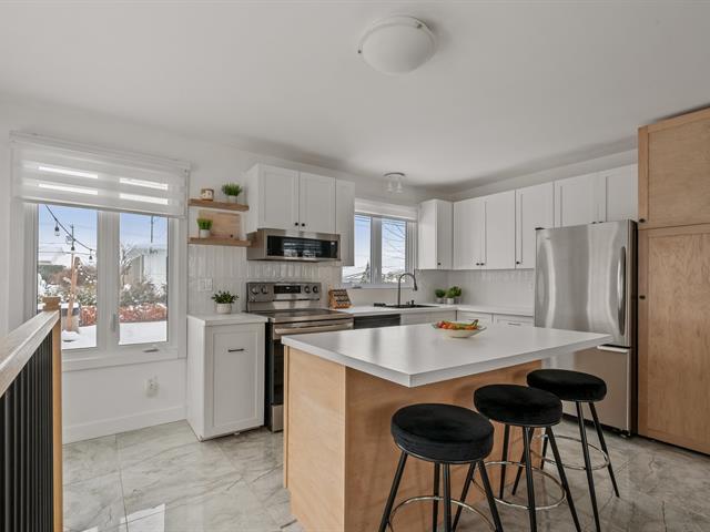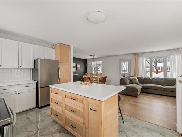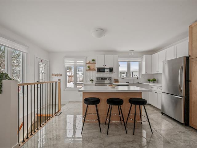 CLÉ EN MAIN! Maison idéale pour 1er acheteur à la recherche de tranquillité et zéro tracas. Cuisine et salle de bain rénovées avec planchers chauffants, grande aire ouverte lumineuse et planchers de bois franc. Confort absolu grâce au chauffage et à la climatisation centrale. 3 CC (poss. 4e) et possibilité d'une 2e SDB. Terrain bordé par des haies de cèdre, spa inclus dans la vente. Énorme atelier offrant beaucoup de rangement pour la famille. Propriété impeccablement entretenue : fenêtres triple verre (2015), bardeaux 40 ans, isolation refait et revêtement CanExel. À distance de marche des écoles, près des commerces et axes routiers. À voir! (58046339)