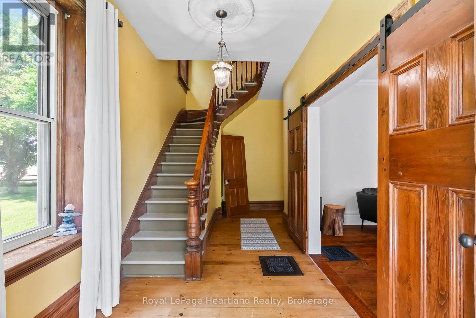 Escape to the country and embrace yourself in the character, charm & craftsmanship of this stunning 4 bedroom, 2 bathroom, 2 storey brick home nestled in a private, storey book setting. Find yourself enveloped in nature in this peaceful and private 1.77 acre property that provides endless space to unwind, for the kids and pets to play while being secluded from the rest of the world. The detached shop provides the perfect space for tinkering on toys, completing projects and storing the old car. Inside you are greeted with stunning brick feature walls, gorgeous hardwood flooring & grand rooms all flooded with natural light, coupled with tall ceilings and stunning original wood trim, baseboards, doors and fireplace features. Two living rooms and a formal dining room allow for ample space to host family and friends; all complimented by the bright and airy kitchen (& butler's pantry) for expansive meal prepping. A den/bedroom, enclosed porch, laundry and mud room complete the remainder of the main floor. Your expansive primary bedroom featuring walk-in closet, 3 pc bath with soaker tub, 3 additional bedrooms, a third living room space and third spa-like 3 pc bath are all accessible on the second level of the home from two grand staircases. Whether you enjoy relaxing on the front porch, playing a game of horse shoes, tinkering in the workshop or hosting grand family dinners and gatherings you will find the perfect space to enjoy and envelope yourself in this peaceful, story-book setting. Call Today To View What Could Be Your New Home at 9540 Ayton Road, Harriston. (41960138)