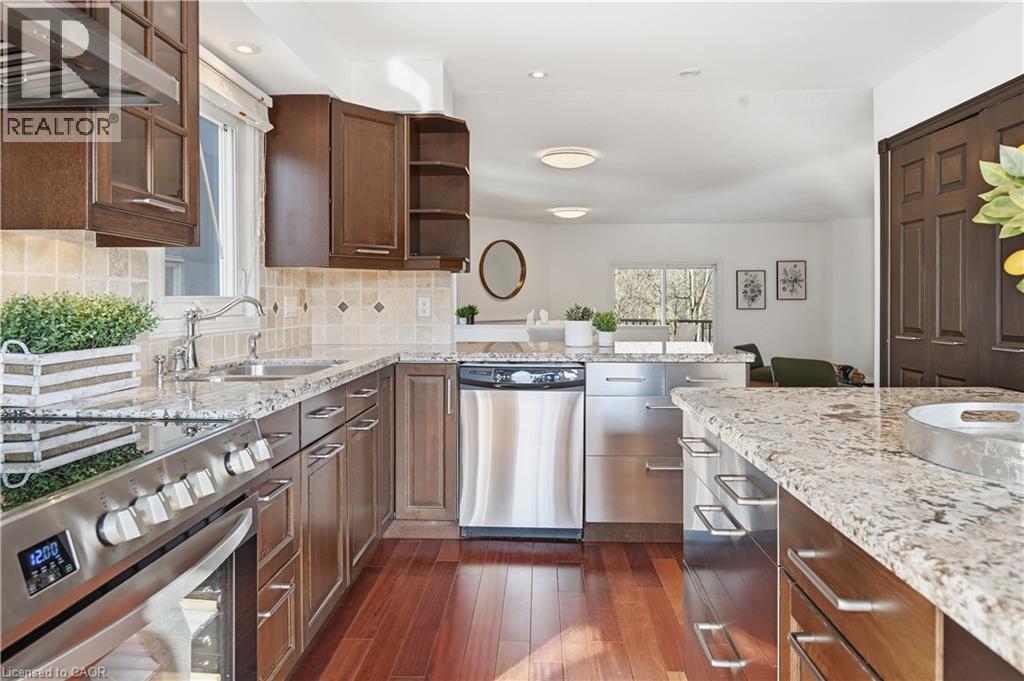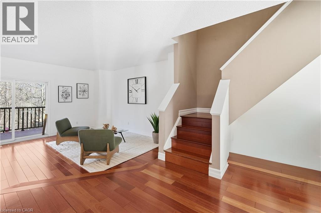 Home and cottage life in one! The ravine of your dreams! Rare opportunity to own a beautifully presented, spacious freehold End-unit (semi attached) townhouse with a drop-dead view of a dense and (all-year) private ravine and trail system. Large two-car wide (3 parking) driveway plus garage with inside entry.No basement-feel with your lower level that allows you to walk straight out to a magnificent landscaped yard with a story-book bridge leading into the forest.Proudly entertain on the huge custom balcony taking in the romantic view.This bright airy home is like moving into a magazine. Large, custom chefs kitchen with granite countertops and quality appliances (brand-new oven), overlooking family and dining rooms. Watch the snow falling from the cosy sitting area by the gas fireplace. Gleaming, well-kept hardwood flooring throughout, 3+1 bedrooms, and 3 posh bathrooms.Behind the home is a large, beautiful trail system. Near all amenities, including a short stroll to childrens play area, tennis courts, and mins to Sheridan college, Oakville Place mall, and major highways.This is a once in a lifetime chance to actually have it all. But dont delay, VERY rare to get a ravine-backing property with 400 ft of dense forest that provides complete privacy. Once it's gone, it's gone! (70056680)
