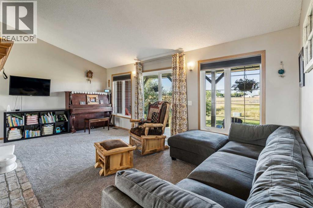 CHECK OUT the amazing AERIAL VIDEO of this property at this link: https://youtu.be/fjUYYL55fkQ. WELCOME to your own slice of country living with city conveniences close by. Situated on approximately 10 acres, this exceptional property offers the space, comfort, and functionality your family needs to live, grow, and thrive. As you arrive, you’ll immediately appreciate the thoughtful layout of this beautifully positioned bungalow, featuring both east- and west-facing decks—perfect for enjoying morning coffee or unwinding with sunset views and a glass of wine. Inside, the main level offers three bedrooms, including a spacious primary suite with double closets and a 3-piece ensuite. The open-concept kitchen boasts ample cabinetry, generous counter space, and a large pantry, flowing seamlessly into the dining area—ideal for family meals and entertaining. A huge living room provides plenty of space for gathering, highlighted by a two-sided gas fireplace shared with the kitchen for added warmth and ambiance. Patio doors lead to the back deck, offering easy access to the yard and a perfect spot to watch the kids play. Downstairs, you’ll find a versatile recreation/play area, an additional 3-piece bathroom, a generous guest space with wall-to-wall closets, a large office or flex room, convenient laundry, and an oversized storage room to keep everything organized. The double attached garage is heated and insulated, complete with a workbench, extensive shelving, and a sink, plus plenty of additional parking outside. For the outdoor enthusiast or equestrian, this property truly shines. The impressive 47’ x 43’ barn features five stalls, a tack room/office, hay storage, and drive-through access. Outside, you’ll find four horse paddocks, pasture space, garden, many recently replaced fences, and a fully equipped outdoor riding arena with night lighting. Two automatic waterers add convenience and functionality. Major updates include new siding, new roof and eaves on both the home and barn (2022), new windows (2011), new well pump (2023) and a brand-new septic field (2024) with a completed Septic Feasibility Report—offering peace of mind for years to come. Located just 5 minutes from Langdon, you’ll enjoy easy access to shops, restaurants, cafes, and everyday services. Calgary is only 15 minutes away, downtown Calgary just 30 minutes, and Strathmore and Chestermere are each a quick 15-minute drive. Nothing to do but move in and enjoy. This is the lifestyle you’ve been waiting for—don’t miss it! (31537653)
