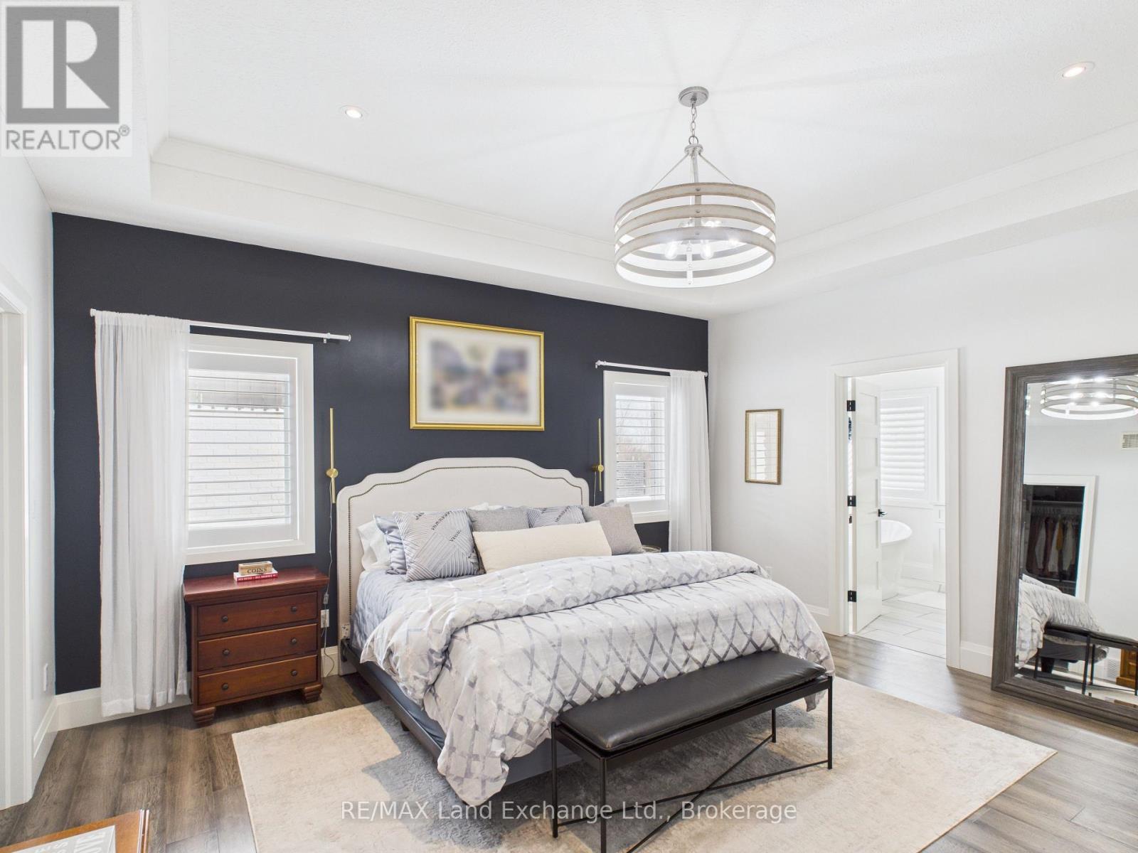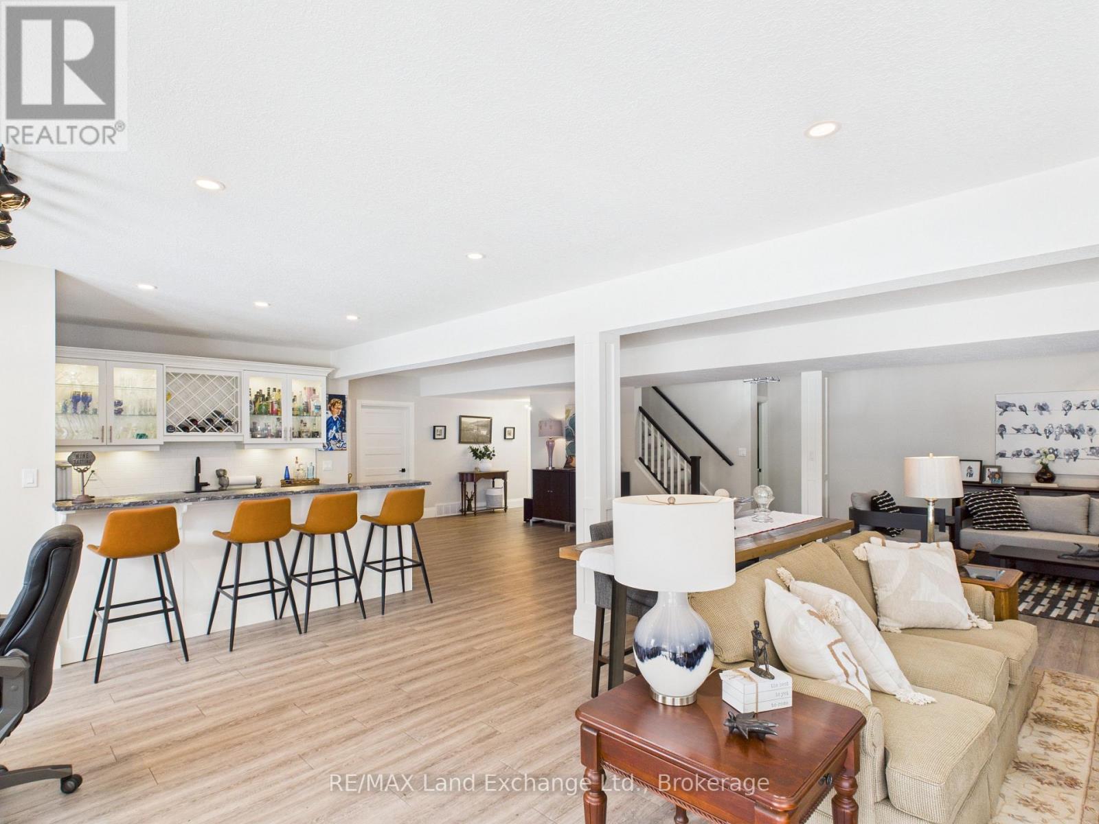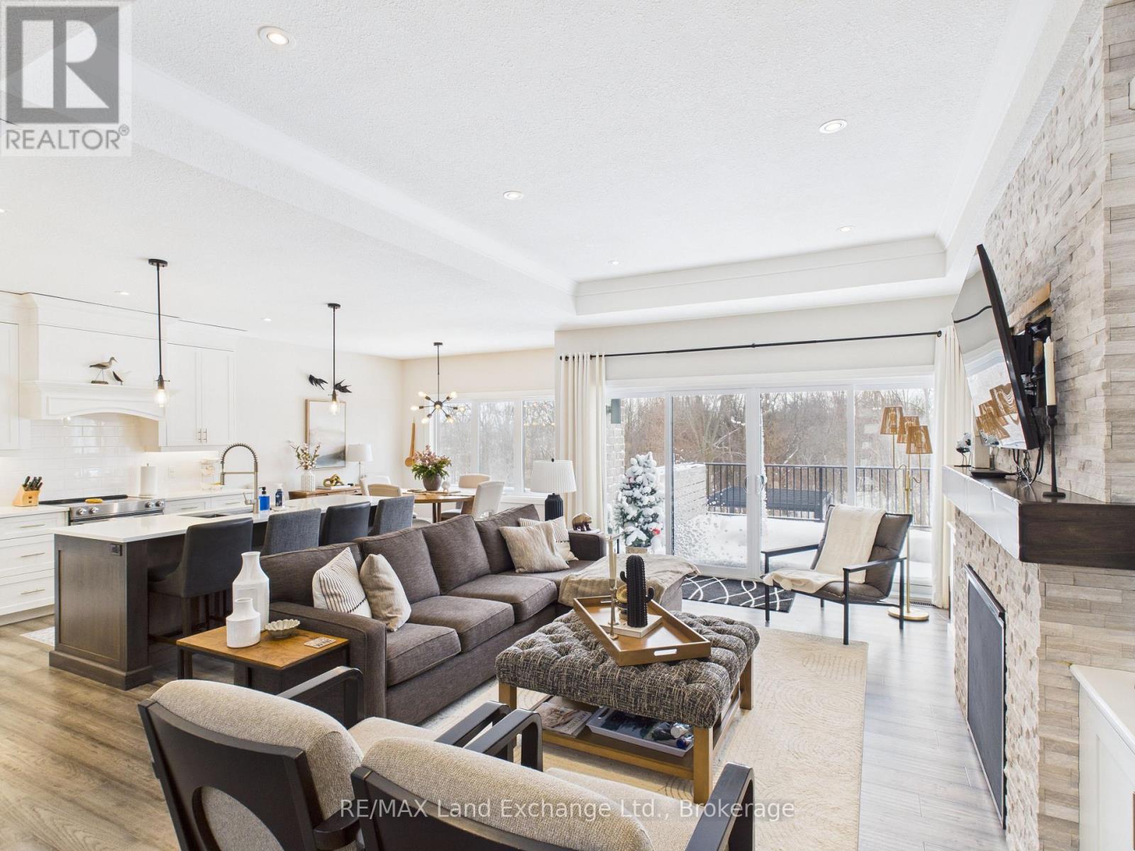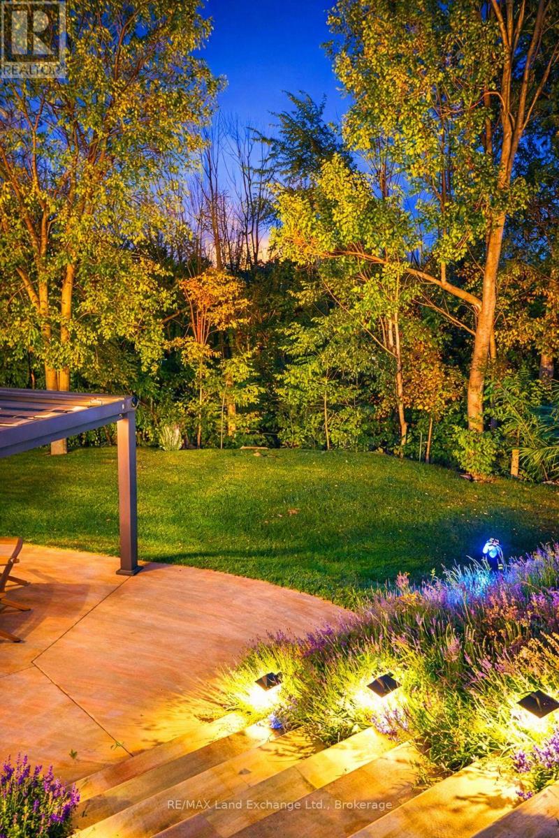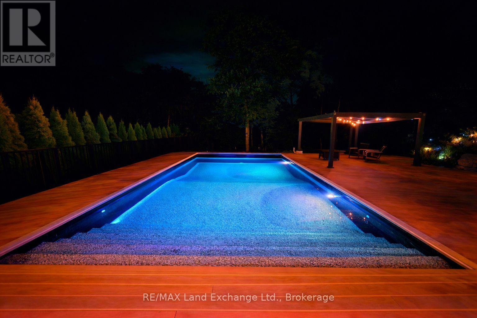 An exquisite executive home set on one of the largest ravine lots in lakeside Kincardine's sought-after Stonehaven subdivision. Thoughtfully designed, this 5-year-old O'Malley-built home showcases exceptional attention to detail in both style and function.From the moment you enter, the home impresses with 10-foot ceilings and an immediate sense of openness. Floor-to-ceiling views of the forested ravine create a tranquil backdrop throughout the main living space. The open-concept design features a gourmet eat-in kitchen with stainless steel appliances and walk-in pantry, a stunning living area with tray ceiling, built-in cabinetry, and natural gas fireplace, and seamless access to the oversized 20' x 14' composite deck overlooking a resort-inspired backyard.The oversized primary suite is a private retreat, complete with a spacious walk-in closet and luxurious 5-piece spa-like ensuite featuring a soaker tub, double vanity, and custom tiled shower. An office or den off the foyer offers flexible use as a work from home space or formal dining room. Two additional bedrooms are thoughtfully positioned on the opposite side of the home and share a beautifully appointed 5-piece bath an ideal layout for families.The fully finished walk-out basement expands the living space with a large recreation room and custom bar, all overlooking the backyard oasis. A soundproofed fourth bedroom and 3-piece bathroom provide an excellent setup for shift workers, older children, or overnight guests.The professionally landscaped backyard is nothing short of spectacular, featuring an 18' x 36' heated saltwater pool, hot tub, two pergolas, and exceptional privacy. The property extends well beyond the rear fence, past the creek and into the forest, ensuring a peaceful and private setting for years to come. A true personal paradise designed for both entertaining and everyday living-this exceptional home must be experienced to be fully appreciate! (41961030)