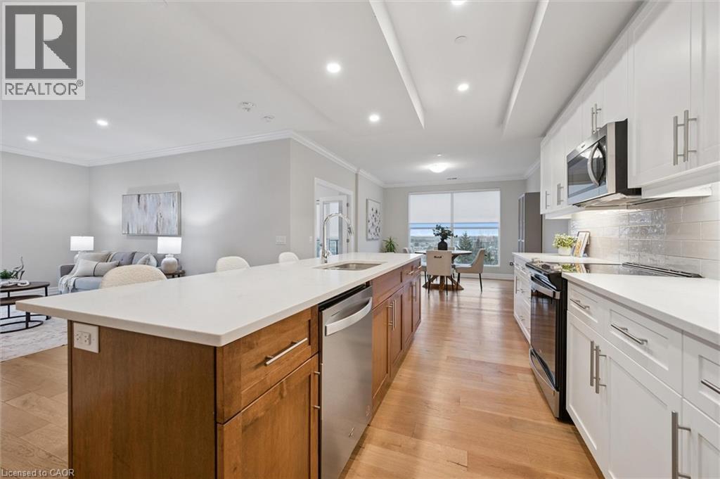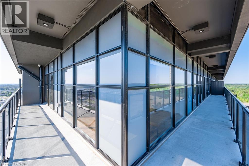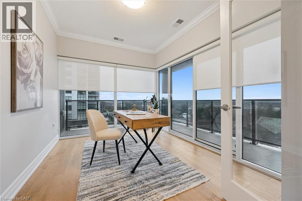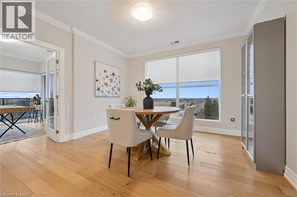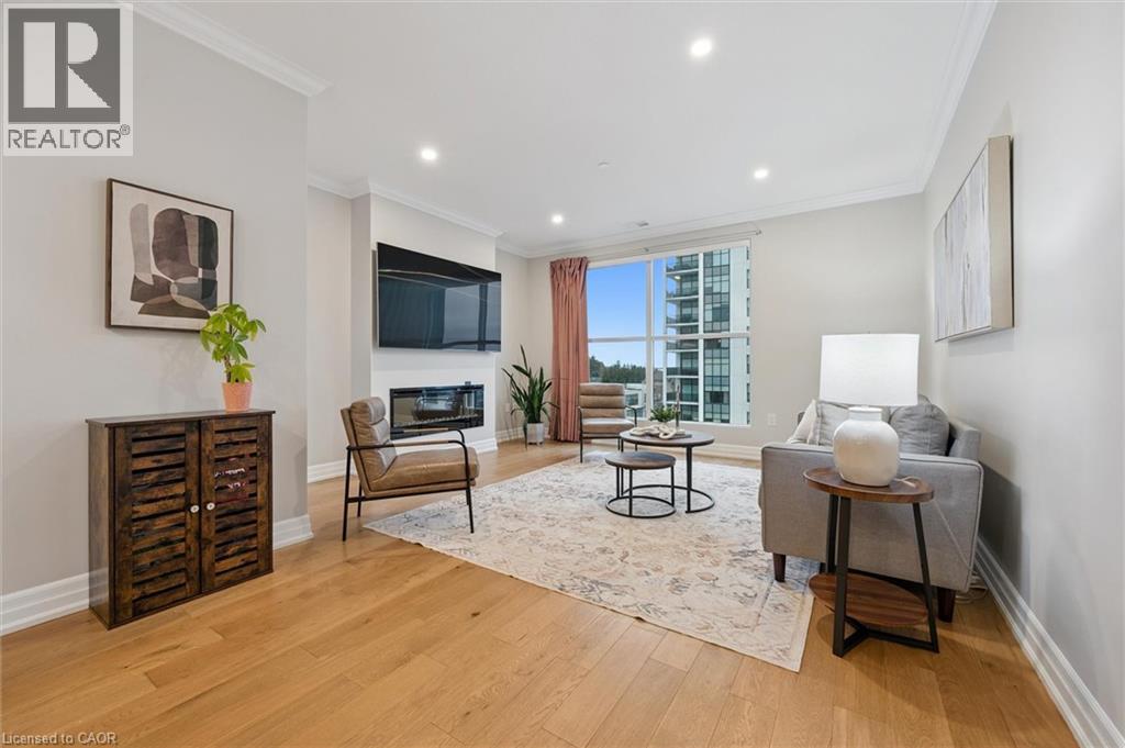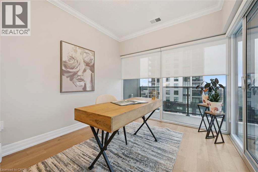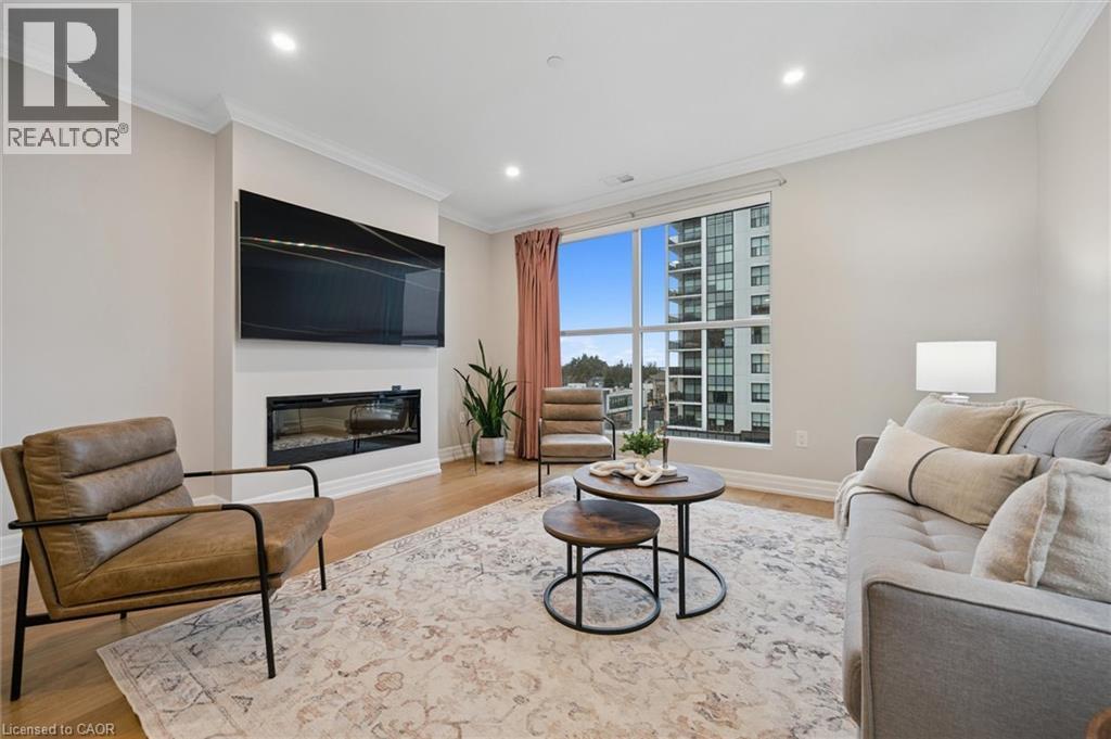 Situated in the prestigious Gordon Square Towers, Suite 505 is an exceptional executive 2 bedroom + den corner residence that is a show stopper! Designed for those who value elevated living, this luxurious condominium showcases floor-to-ceiling windows framing breathtaking views from every room, flooding the space with natural light and highlighting the soaring ceilings and rich engineered hardwood . The beautifully appointed kitchen flows effortlessly into the open-concept living area, creating a refined yet comfortable setting ideal for entertaining, working from home, or simply unwinding at the end of the day. The expansive primary suite offers a peaceful retreat with a gorgeous ensuite, while the versatile den provides flexibility as a home office, guest space, or media room. Perfectly suited for professionals, down sizers seeking turnkey luxury, or executive buyers craving low-maintenance living without compromise. Residents of 1800 Gordon enjoy an unmatched lifestyle with thoughtfully curated amenities including a fitness centre, golf simulator, and an impressive SkyLounge with billiards and a wet bar, plus a lovely guest suite, all designed to extend living beyond the suite itself. Set in South Guelph's most sought-after, amenity-rich neighbourhood, this remarkable residence offers a rare blend of sophistication, convenience, and community - a truly elevated way of life. (70056535)
