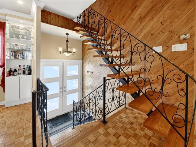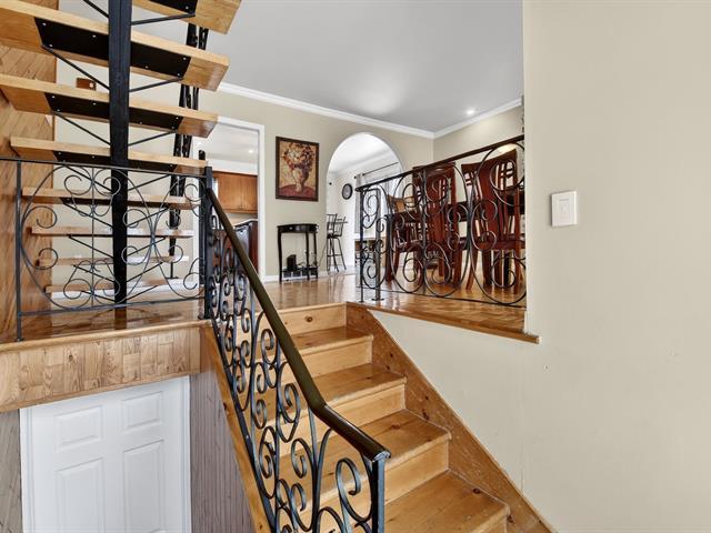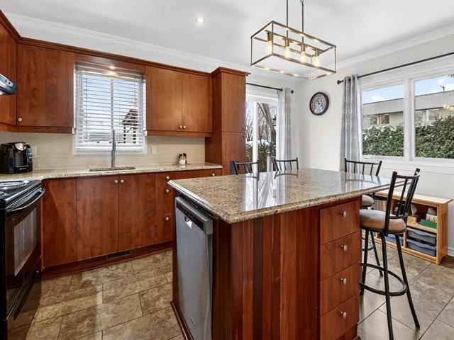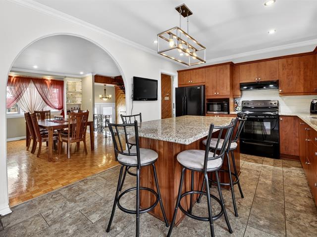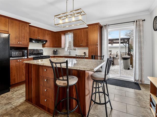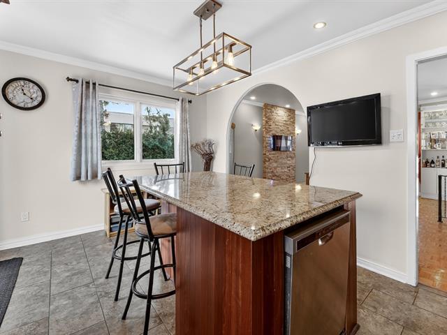 Well-maintained two-storey property located in a peaceful area close to all services, ideal for a large family or an intergenerational project. It offers four bedrooms, two full bathrooms and a powder room. The upper level features a spacious bedroom with an office or lounge area, a powder room and a balcony, creating a private suite. The main floor includes two bedrooms, a bathroom, a functional kitchen with dinette and a bright dining room. Renovated basement with kitchen, family room, bathroom and laundry area. Backyard featuring an above-ground pool, large terrace and a spacious yard. (43805194)