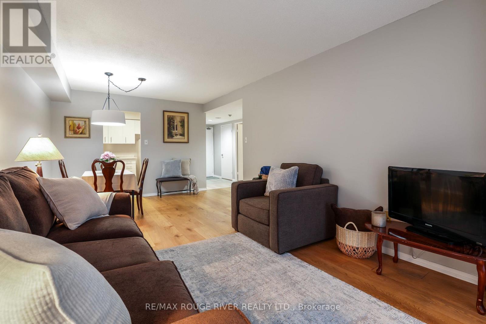 Welcome to 15 Sewells Rd. This well-maintained 1-bedroom, 1-bath condo offers 708 sq ft of bright, functional living space. The open-concept layout features combined living and dining areas, engineered hardwood and vinyl flooring throughout, a spacious bedroom, and an east-facing open balcony. Enjoy the convenience of an ensuite storage room plus an additional locker for all your storage needs. Includes one underground parking space. Building amenities include a gym, party room, newly renovated lobby and hallways, and a laundry room. Maintenance fees include all utilities and Rogers cable. Ideally located in the Malvern neighbourhood, steps to TTC, shopping, groceries, schools, parks, recreation centre, and daily amenities, with quick access to Hwy 401. Perfect for first-time buyers, downsizers, or investors-move-in ready! (41961553)