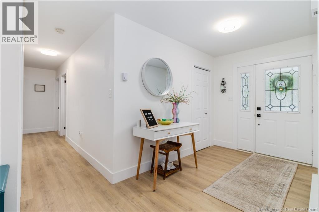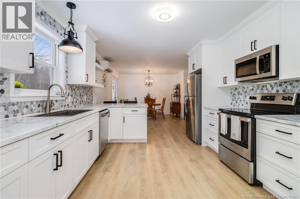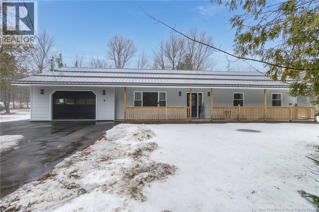 Welcome to 9 Country Squire Lane. This corner lot bungalow in Charters Settlement offers true single level living with a well planned layout. Entering the welcoming foyer, a spacious living room is off to the left, and, straight ahead, the dining area with patio doors leading to the backyard. The modern kitchen offers stainless steel appliances and white cabinetry with generous storage. A mudroom just off the kitchen, which houses the laundry, connects to the garage and a tucked away half bath/utility room. The primary bedroom is located at the opposite end of the home. It includes two separate closets and a cheater door to the main bathroom. Two good sized bedrooms sit at the front of the house, one of which is currently used as a home office. Fully renovated in 2022, the major updates are already done. Comfort and efficiency were clear priorities, with a metal roof with snow rails, added blown-in attic insulation, and two ductless heat pumps. Located approximately 13 minutes from Uptown Fredericton and the Corbett Centre, this home offers a quieter setting without giving up Frederictons amenities. A solid option for first-time buyers, downsizers, or anyone looking for a low maintenance home thats ready to move into. (29391062)