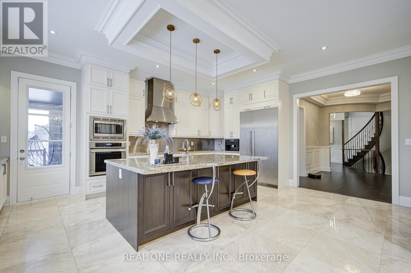 Experience luxury living at 99 Glensteeple Trail, a custom-designed 5,300 sq ft stone villa set on the Largest lot in the subdivision (120 x180)* Overlooking Beacon Hall Golf & Country Club* This home features 4 ensuite bdrms, a gourmet kitchen, grand curved staircase, 5 Bay windows, and an extended rear design offering exceptional natural light & ravine views* The W/O basement has over 2,500 sqft. of customizable space W/ bay windows - ideal for a home theatre, gym, recreation area, or multi-suite layout* A dedicated Elevator shaft location ensures long-term accessibility for future-ready convenience* A 4-car garage plus driveway provides parking for up to 10 vehicles* this rare estate is the Only custom-built home in the subdivision with a grand curved staircase anchoring the main level blends craftsmanship, privacy & convenience in one of Aurora's most prestigious communities*4 spacious bdrms, each featuring its own ensuite & W/I closet*The primary suite includes a fireplace, bay windows w/ ravine views, a spa-inspired ensuite w/separate tub & shower and dual w/I closets*The gourmet Chef's kitchen Induction cooktop, B/I Miele coffee machine, oversized island, breakfast bar, and a bay-window dining area. Seamless open-concept living spaces with elegant crown mouldings. (41961951)