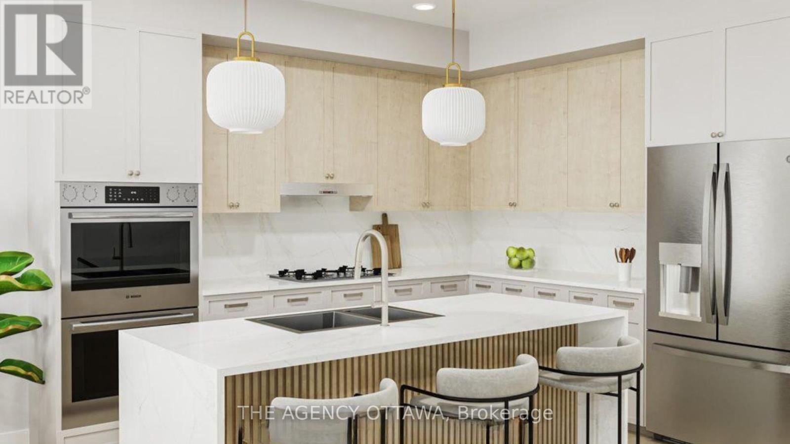 Experience riverside living at The Docks, a thoughtfully planned community designed for those seeking comfort, style, and connection to nature within the heart of the city. This well-designed 3-bedroom townhome offers 1,664 sq. ft. of modern living space with a private backyard, single-car garage, and additional laneway parking.The main floor features an open-concept layout with hardwood flooring throughout and a contemporary kitchen complete with a 60" x 36" island, Silestone countertops, and modern cabinetry. Upstairs, all three bedrooms feature vaulted ceilings. The primary suite includes a private balcony and ensuite bathroom, while second-floor laundry adds everyday convenience.Steps to Mooney's Bay Beach, Carleton University, Hogs Back Park, and transit routes to downtown Ottawa. (41962678)