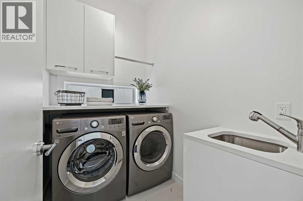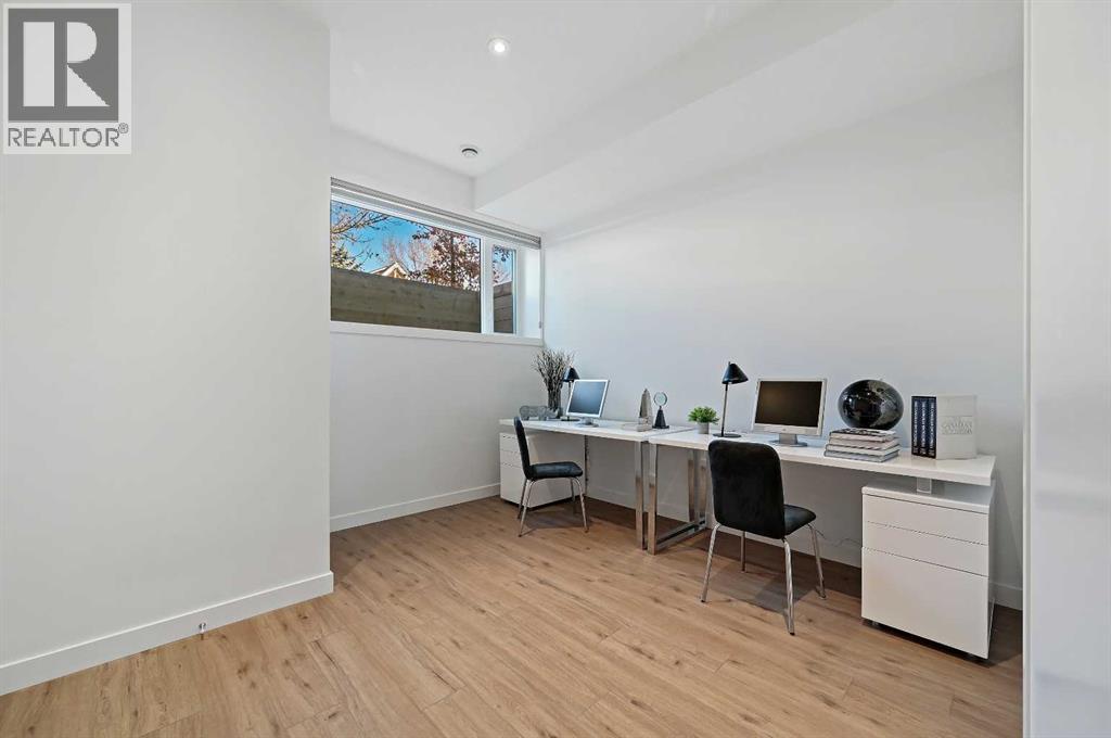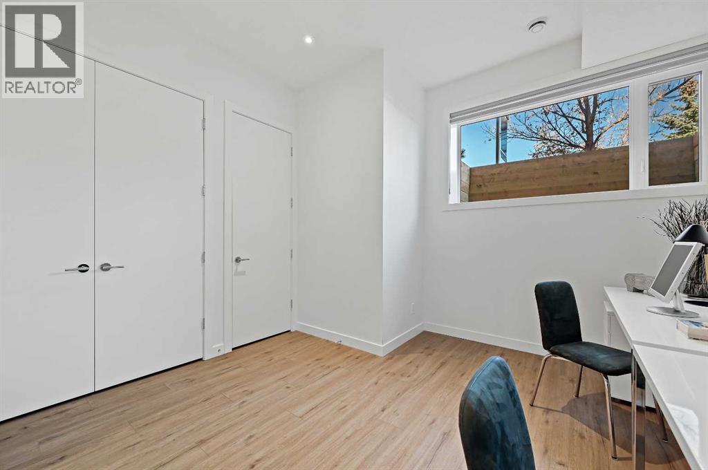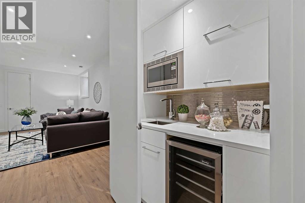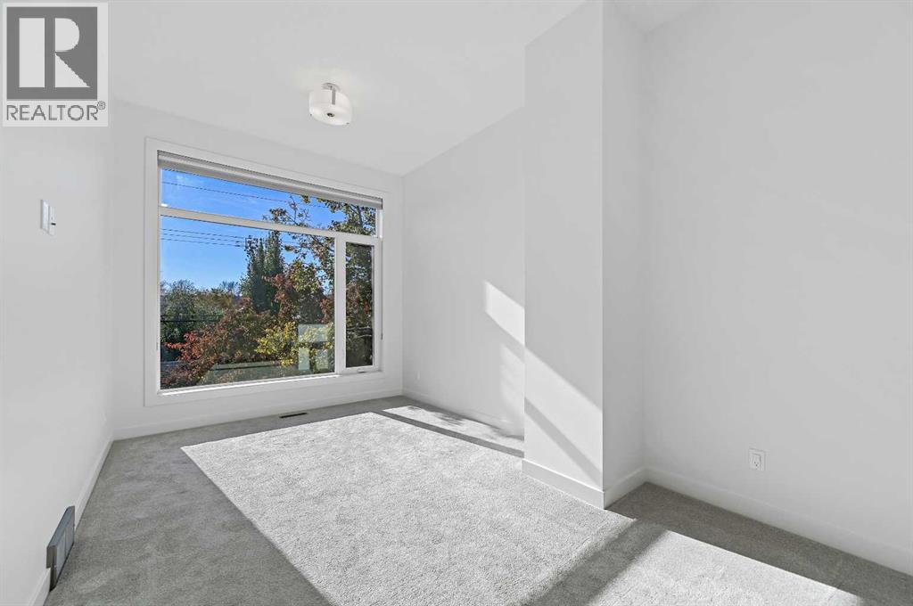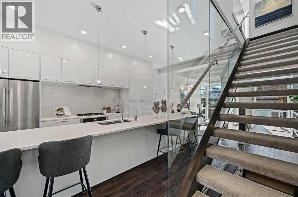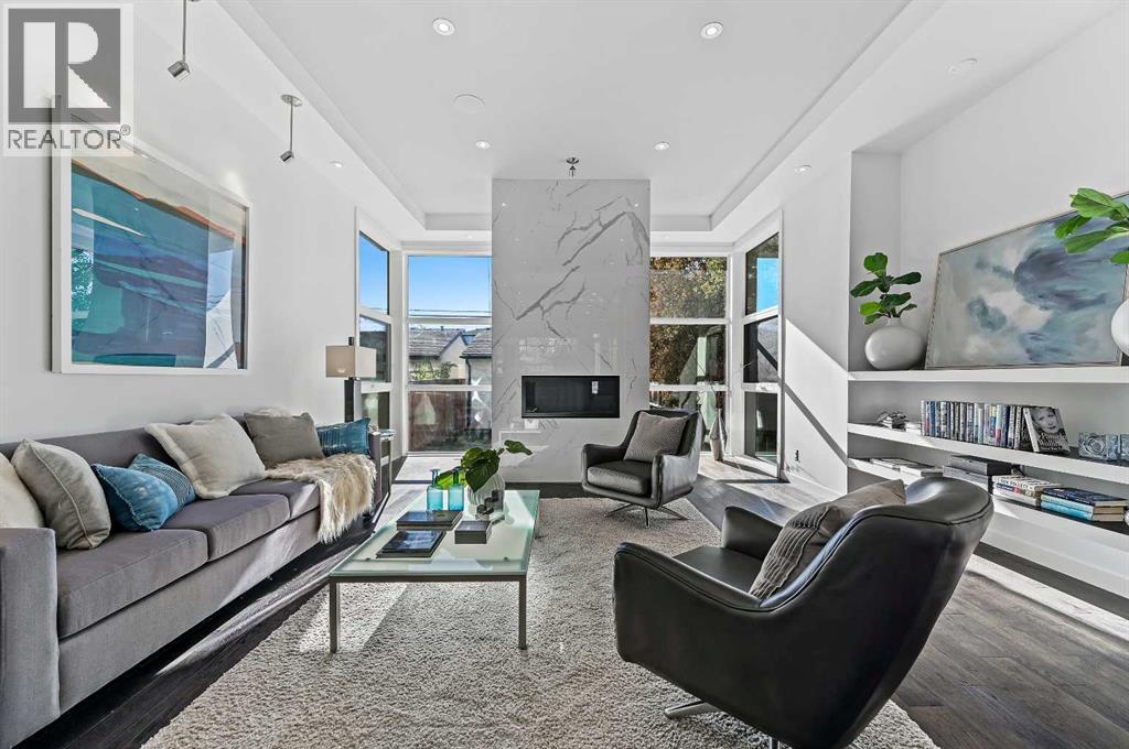 This stunning modern home in West Hillhurst, designed and built by Deanmark Custom Homes, blends European-inspired architecture with the comforts of luxurious urban living. Every detail reflects quality, comfort, and thoughtful design — from the creative open-concept layout that maximizes space and natural light, to the oversized ceiling heights and use of modern, natural, and durable finishes throughout. The main floor features gleaming hardwood and a centerpiece kitchen with a gas cooktop, built-in convection oven, quartz countertops, custom cabinetry, and a large island perfect for hosting. The kitchen opens into a bright, south-facing family room with a tile-wrapped gas fireplace and flows effortlessly to the low-maintenance south backyard. A detached garage includes an EV fast charger, ideal for eco-conscious city living. Upstairs, the spacious primary suite is a serene escape with a walk-in closet and luxurious 5-piece ensuite featuring in-floor heating. Two more bedrooms, a 4-piece bath, and a laundry room with a sink complete the upper level. The fully finished basement is great for guests and entertaining — enjoy the wet bar with fridge and microwave, a 4th bedroom, and a spa-style bathroom with steam shower. Additional features include A/C, vacuflo, water softener, filtration system, and roughed-in basement in-floor heat. Energy-efficient 9.8 kW solar panels make this home future-ready. All of this in a prime location just minutes to downtown, the Bow River, and endless walking and biking paths. This home is a must see to appreciate the quality of the home. (31539259)