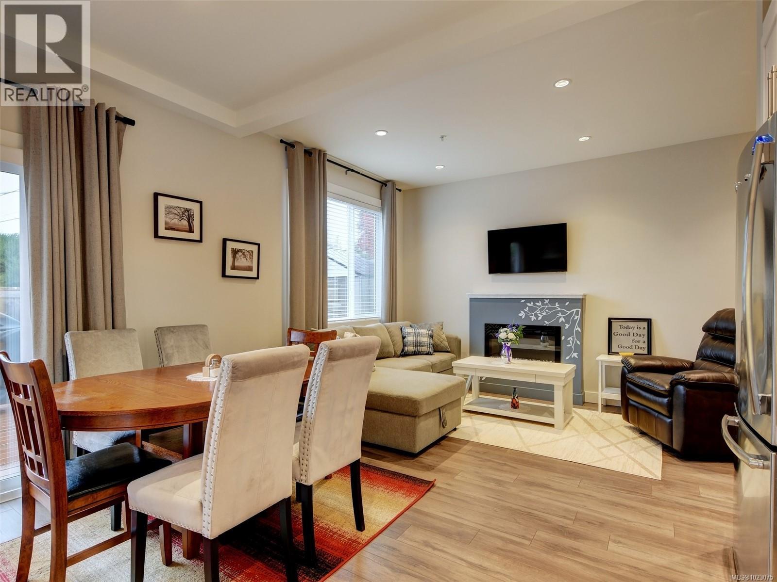 Wow, what a location! You are a 6 min. walk to the Village Food Market & 1 to the Sooke Brewing Co…and so much more in between. This lovely end unit is bright and pristine …offering 9' main floor ceilings, cozy living room fireplace, deluxe kitchen has clean lines, quartz countertops, soft close drawers/doors, stainless appliances & under cabinet lighting. The Primary bedroom with walk-in closet & sparkling 5-piece ensuite including tiled floors, double sinks & under kick LED motion activated lighting. The kitchen flows to the rear yard that is sunny and private and includes a storage. A great spot to chill or BBQ! Dogs & cats are welcomed, no size restrictions. You are a short stroll to all the core Sooke amenities…shopping, dining, schools, bus route, & and the list goes on and on. No disappointments here. Easy to view by appointment. (30282610)