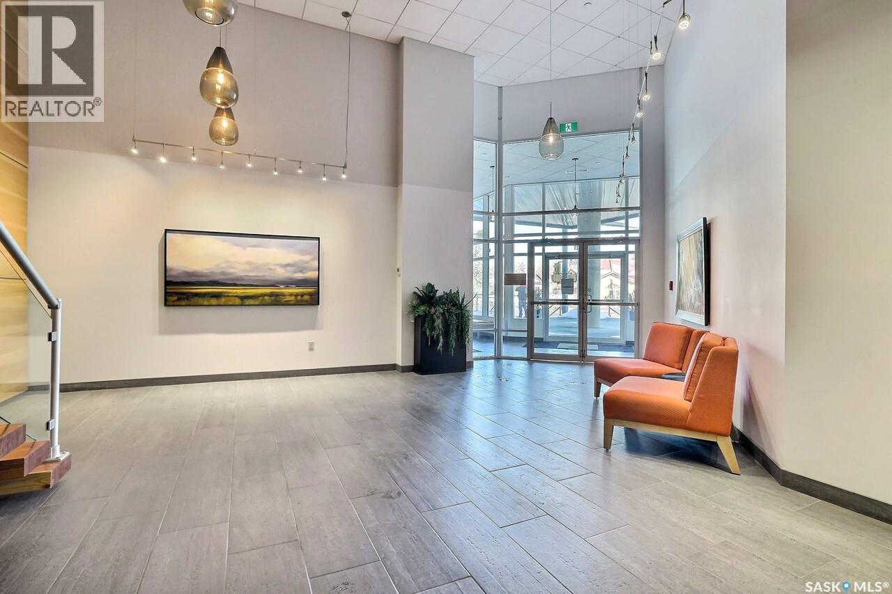 Fantastic downtown condo in desirable location close to the park and all downtown amenities. Very well maintained with engineered hardwood and tile flooring throughout. Open floor plan offers spacious living/dining room, huge kitchen with plenty of white cabinetry and stone counters. Very large den could double as an office or guest room. Huge master bedroom and main bath with tiled floor. Underground heated parking stall. Centre Square offers luxury, maintenance free condo living with beautiful amenities, roof top lounge, gym facilities and easy walkability access to Wascana Park and all downtown shopping and activities. (29286638)