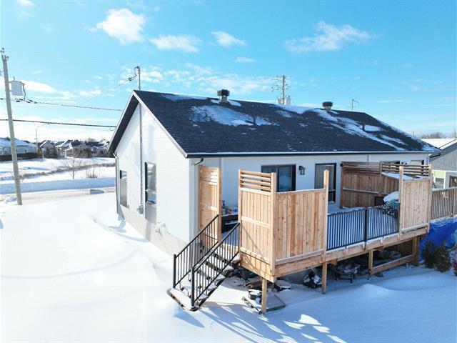 À vendre à Laurier-Station! Superbe jumelé construit en 2024, offrant une construction de qualité et une belle finition. L'aire de vie ouverte et lumineuse met en valeur une cuisine moderne et fonctionnelle avec îlot central, idéale pour le quotidien et pour recevoir. Planchers et escaliers en bois, aménagement bien pensé et chaleureux. La propriété comprend 3 chambres, une salle de bains, une salle d'eau ainsi qu'une salle de lavage. À l'extérieur, profitez d'un magnifique patio de 12 x 24 pieds, bénéficiant d'un terrain aménagé de près de 4800 pi². Une rare propriété clé en main à découvrir!! (57094202)